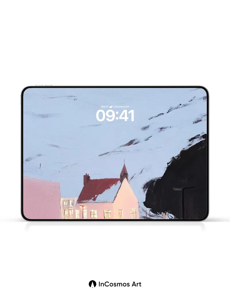 Serenity in Snowdrift Wallpaper with Pink Church Glow