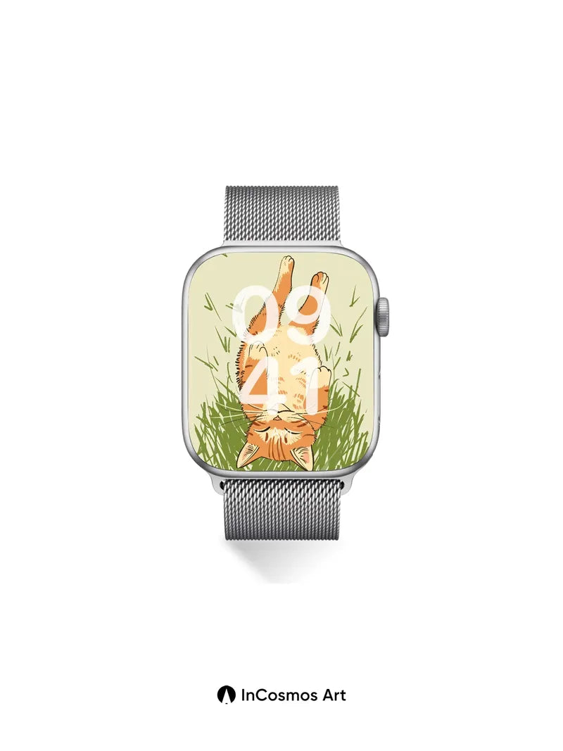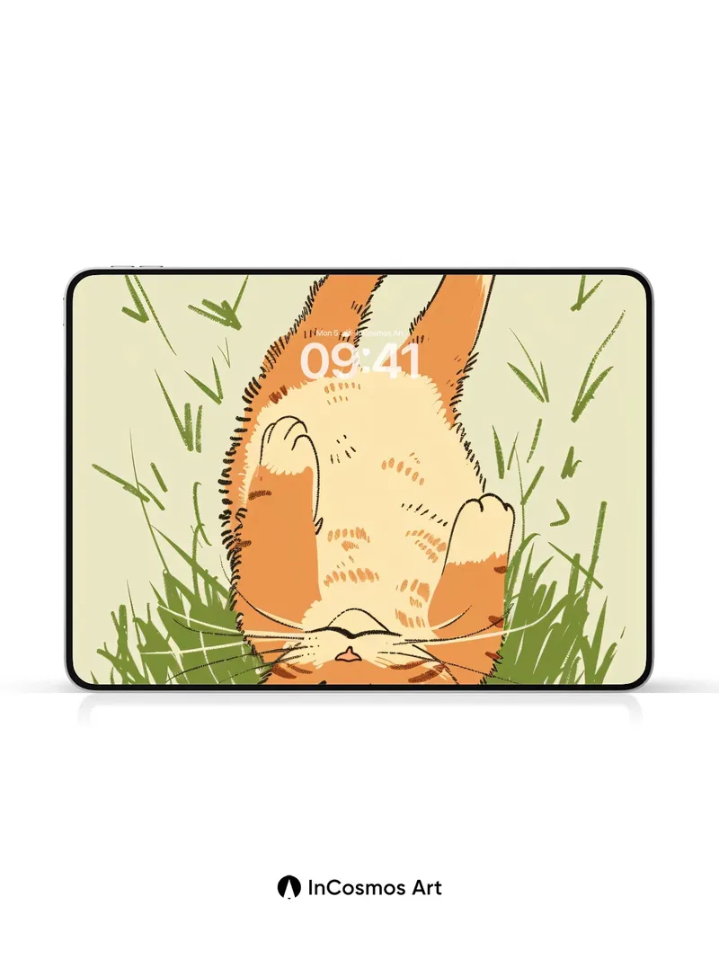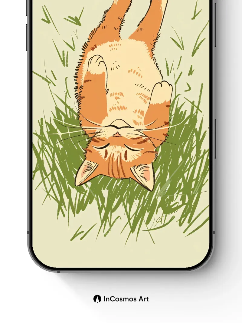 Debug product.metafields.custom.desc: Did you know cats sleep an average of 12–16 hours a day, their bodies sinking into the earth like soft clay? This ginger feline lies upside-down in sunlit grass, belly exposed, whiskers trembling with quiet joy—its fur a map of rust and cream, each stripe a whispered secret. The blades curl around it like green fingers, holding still as if afraid to disturb its dream.