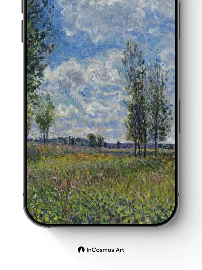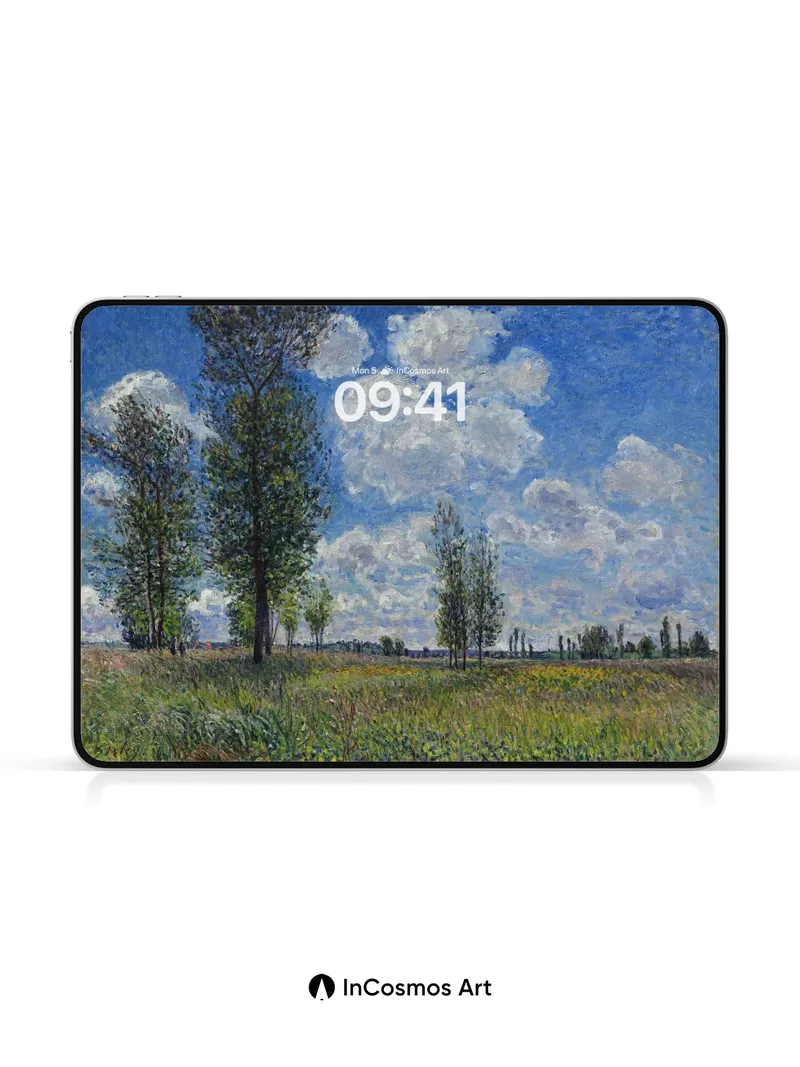 Serenity in Sunlit Fields Wallpaper with Impressionist Brushwork