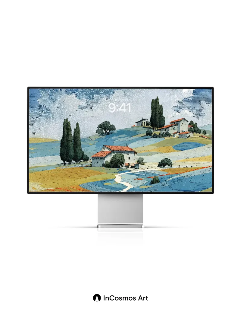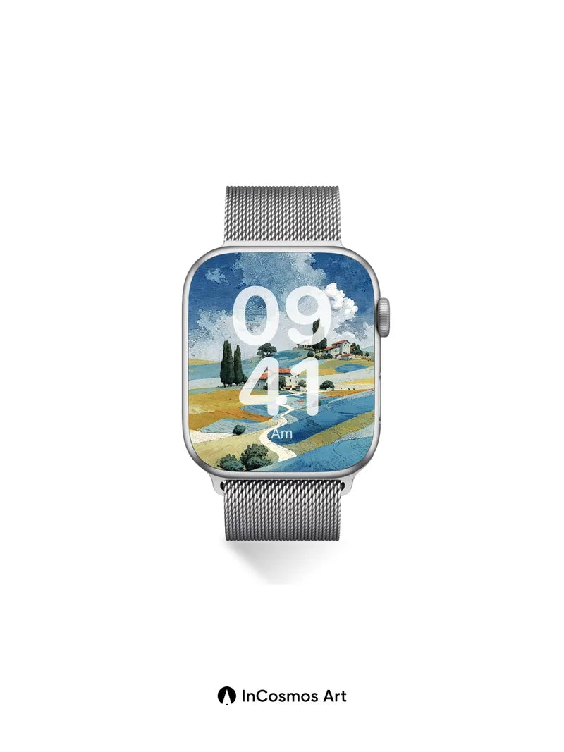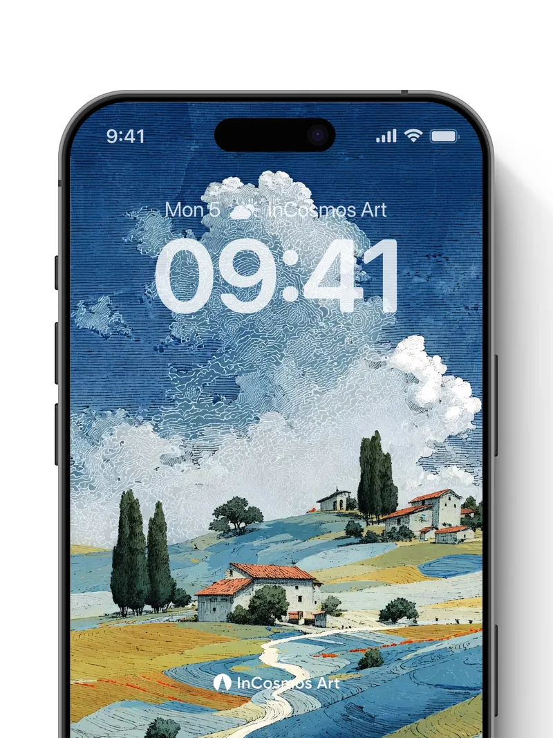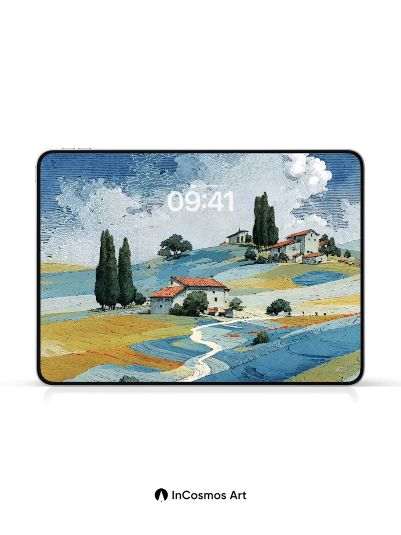Debug product.metafields.custom.desc: Did you know that Tuscan soil once painted entire villages in hues of rust and ochre, each harvest echoing through time? Here, the land breathes in undulating waves of blue and gold, where cypress trees stand like sentinels beneath a sky stitched with cloud-threads. A ribbon of path winds through fields alive with poppies—each petal a tiny flame against the cool earth. The light doesn’t fall; it settles, soft as linen over stone.