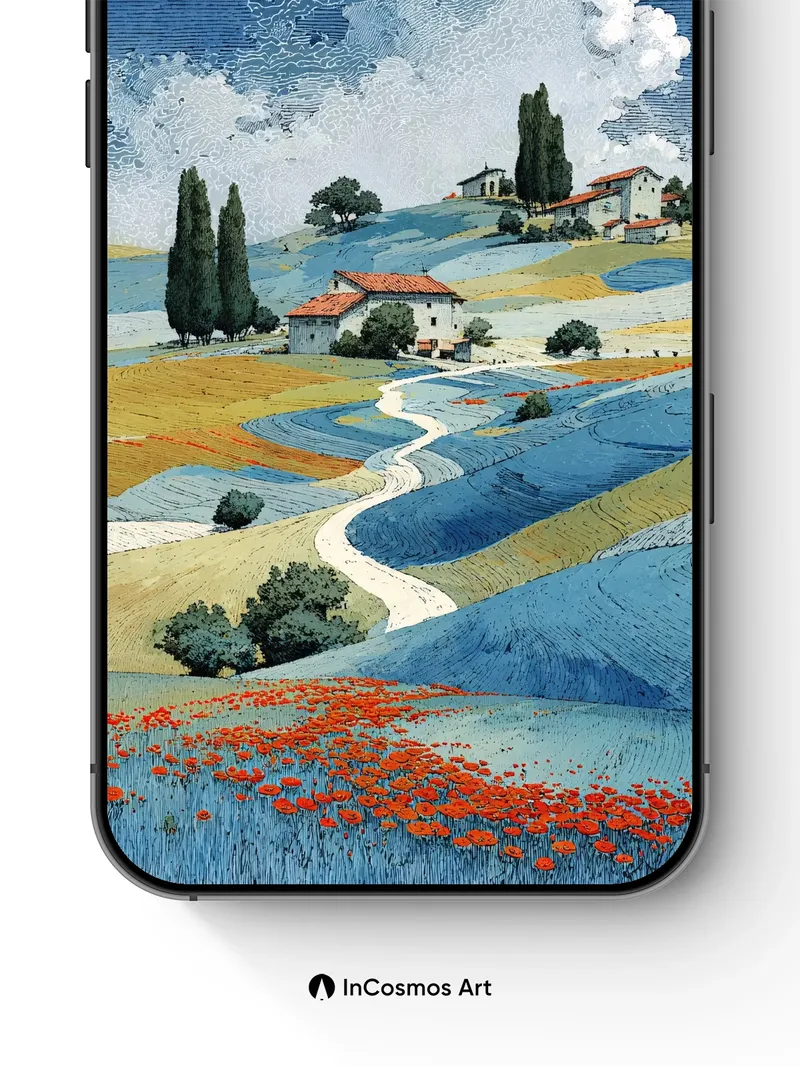 Did you know that Tuscan soil once painted entire villages in hues of rust and ochre, each harvest echoing through time? Here, the land breathes in undulating waves of blue and gold, where cypress trees stand like sentinels beneath a sky stitched with cloud-threads. A ribbon of path winds through fields alive with poppies—each petal a tiny flame against the cool earth. The light doesn’t fall; it settles, soft as linen over stone.