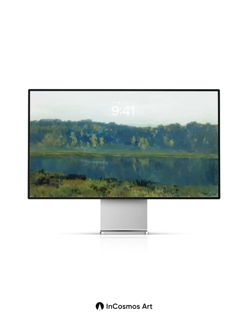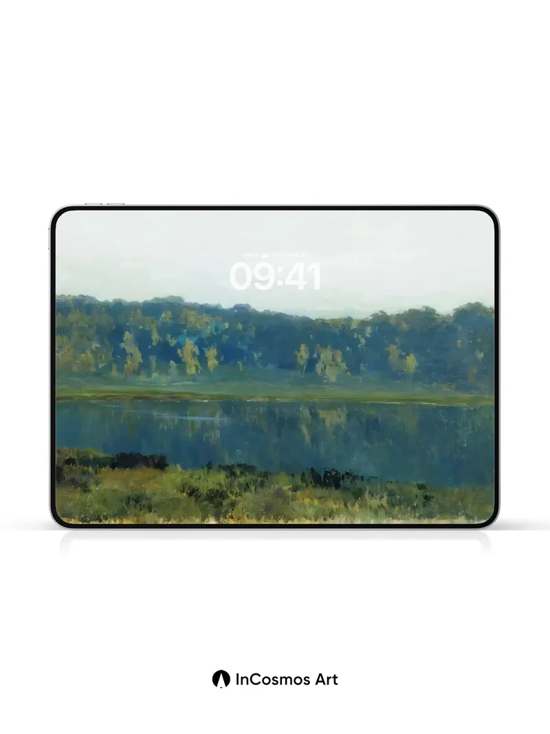 Debug product.metafields.custom.desc: Did you know that Impressionist painters often worked en plein air to capture fleeting light? Here, the water mirrors the sky like a slow breath, and trees lean into the horizon as if whispering secrets. The brushstrokes dance across the surface, not just reflecting nature but feeling it—cool greens sigh against soft blues, and every edge is softened by time.