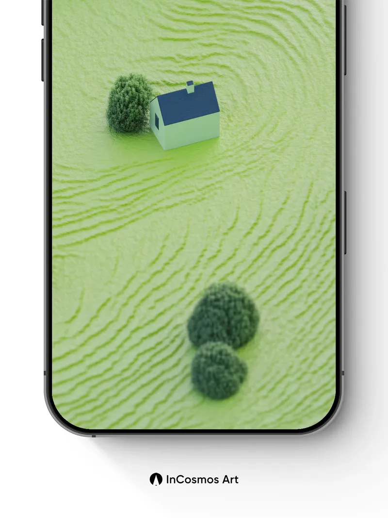 Serenity Meadow Wallpaper with Floating House