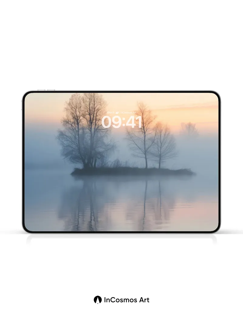 Serenity Mirage Wallpaper with Mist-Whispered Trees
