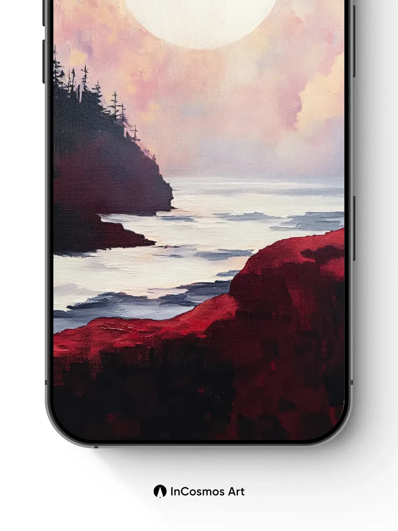 Serenity Moonrise Wallpaper with Crimson Cliffs