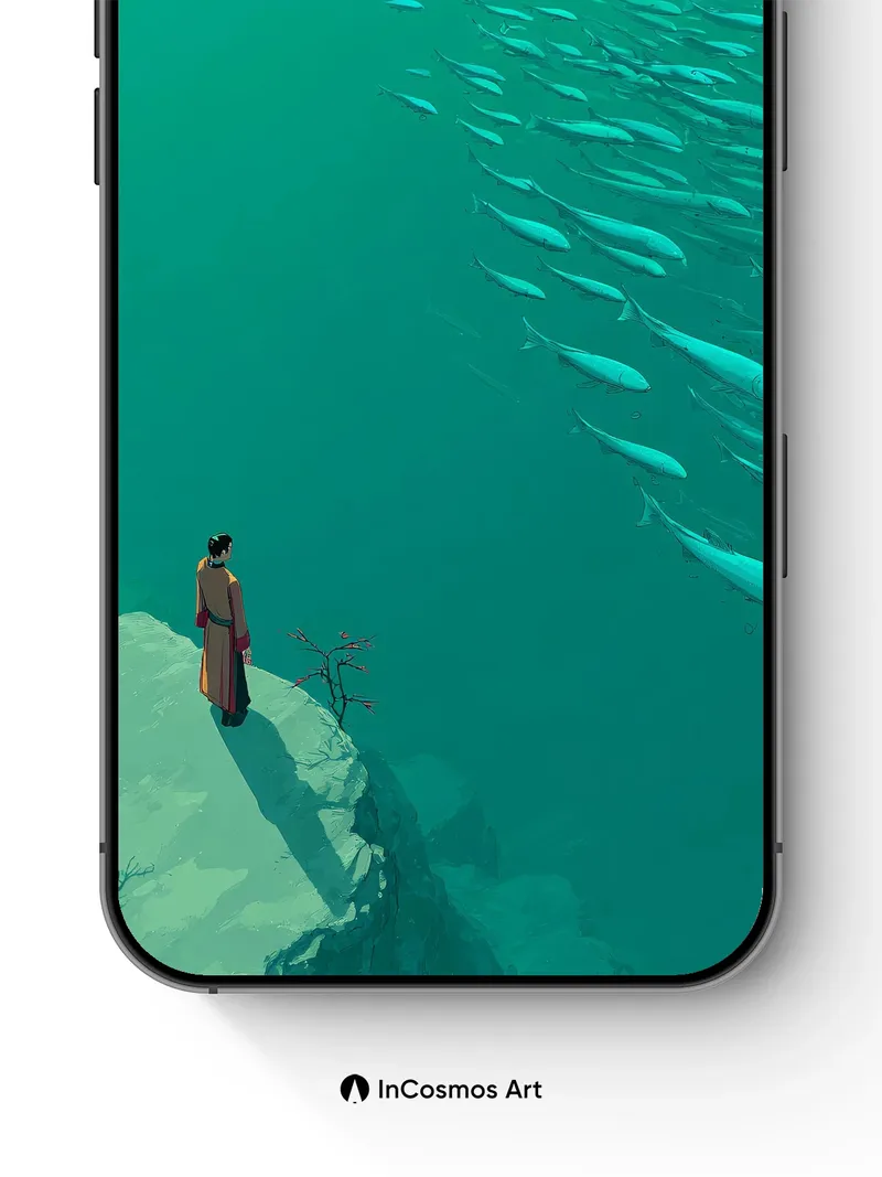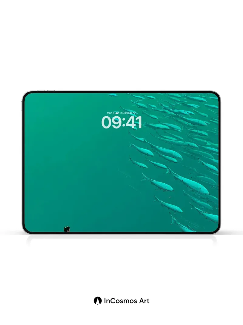 Serenity Ocean Wallpaper with Floating Fish Trail