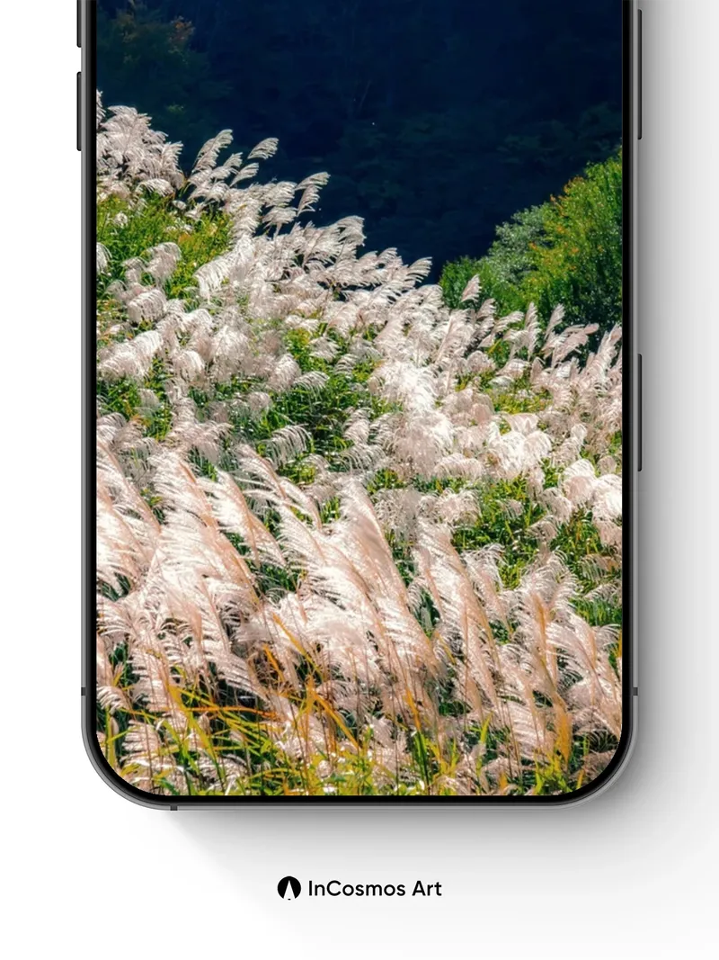 Serenity of Silver Grass Wallpaper with Mountain Hush