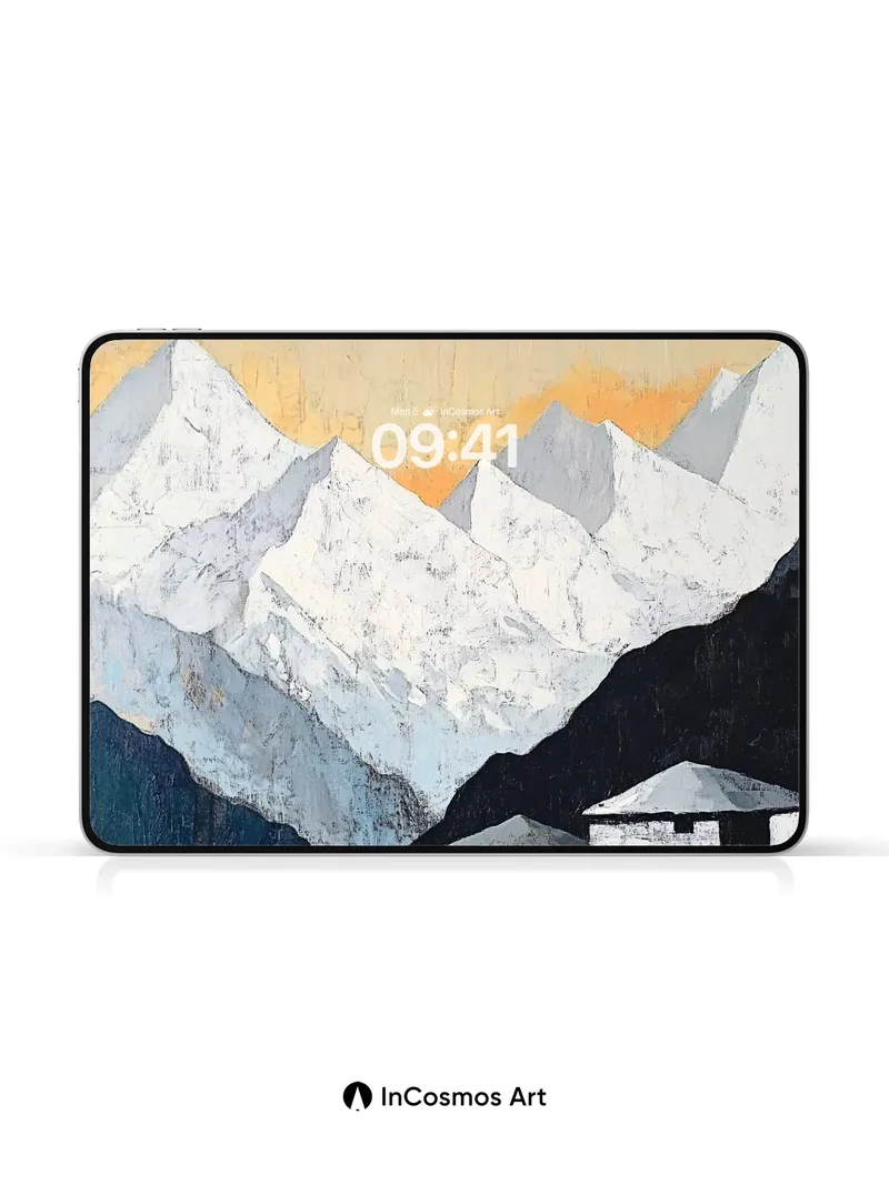 Serenity Peaks Wallpaper with Snow-Crowned Silence