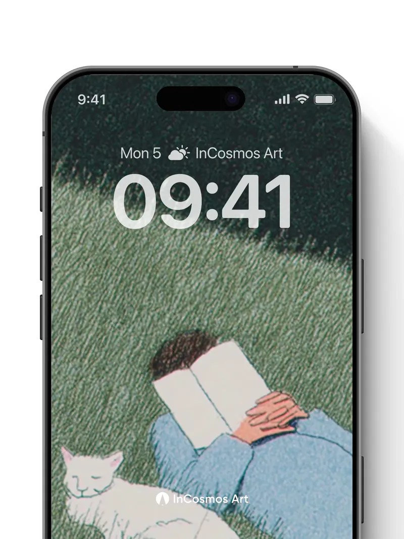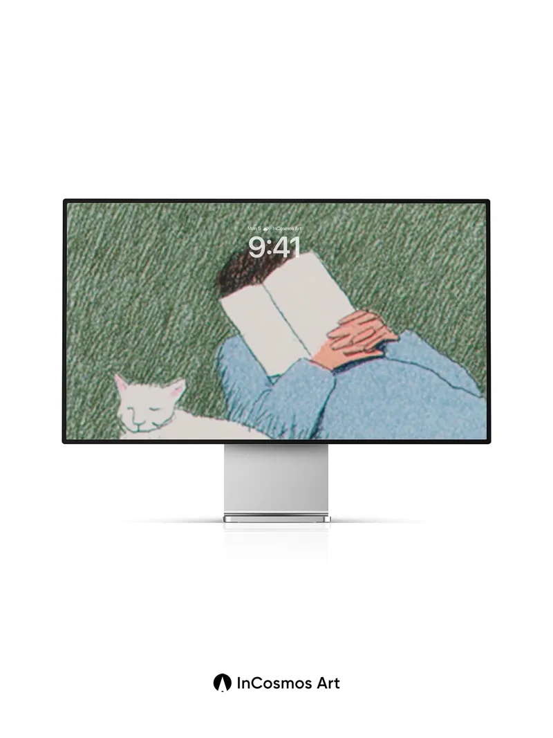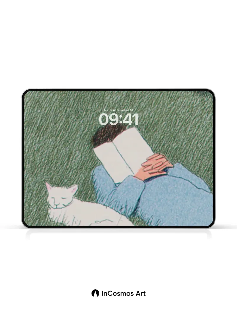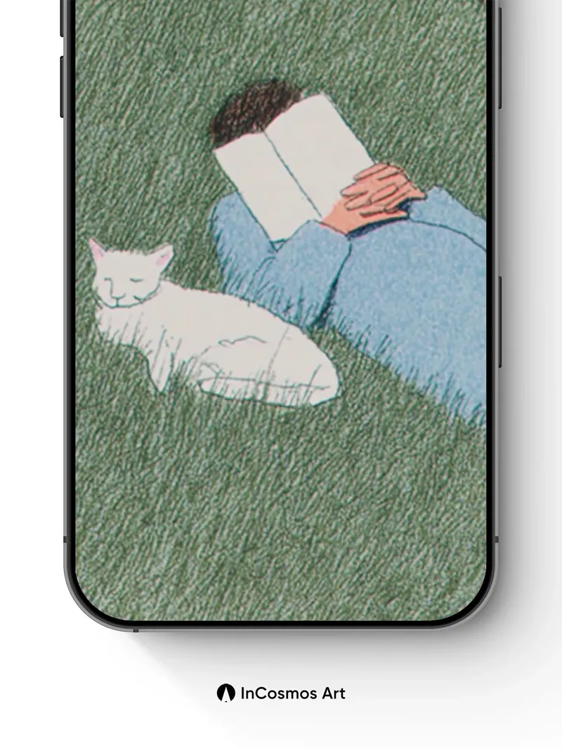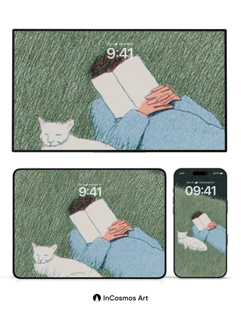 Serenity Reading Wallpaper with Sleeping Cat