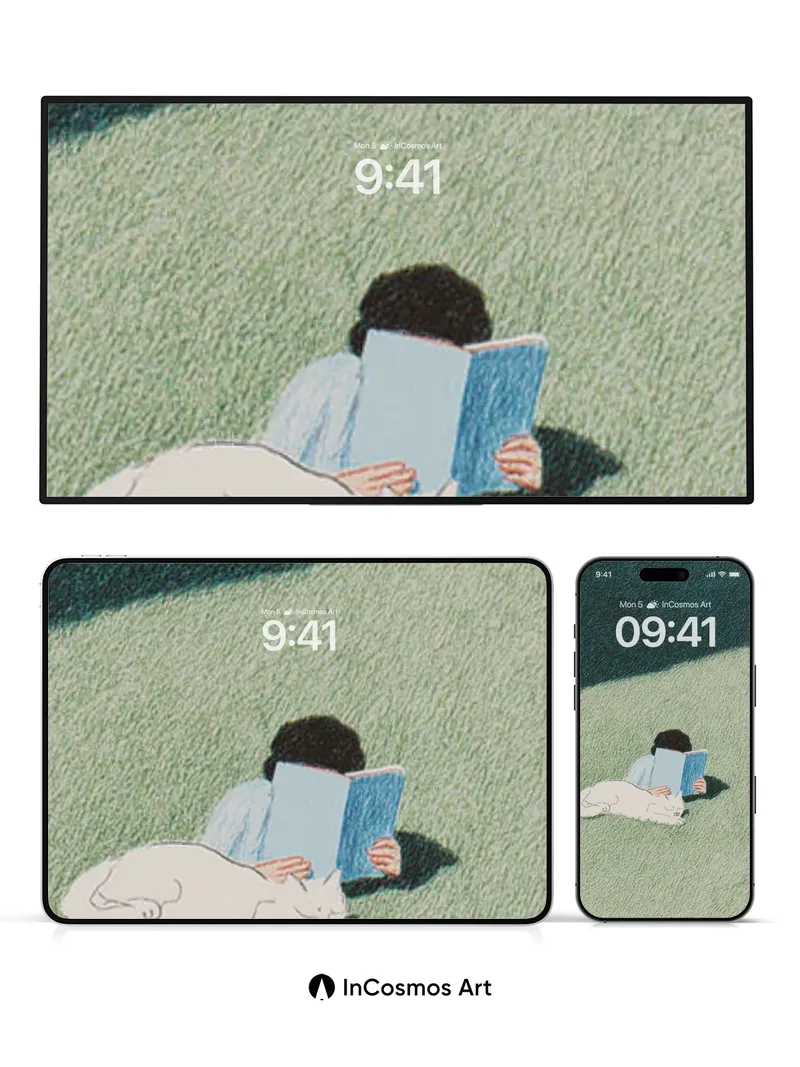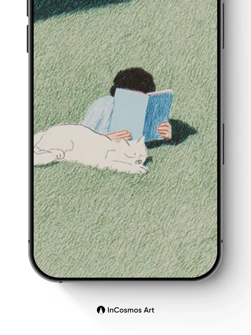 Serenity Reading Wallpaper with Sleeping Cat