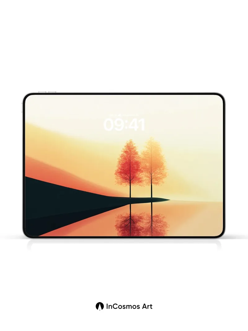 Serenity Reflection Wallpaper with Autumn Silhouettes