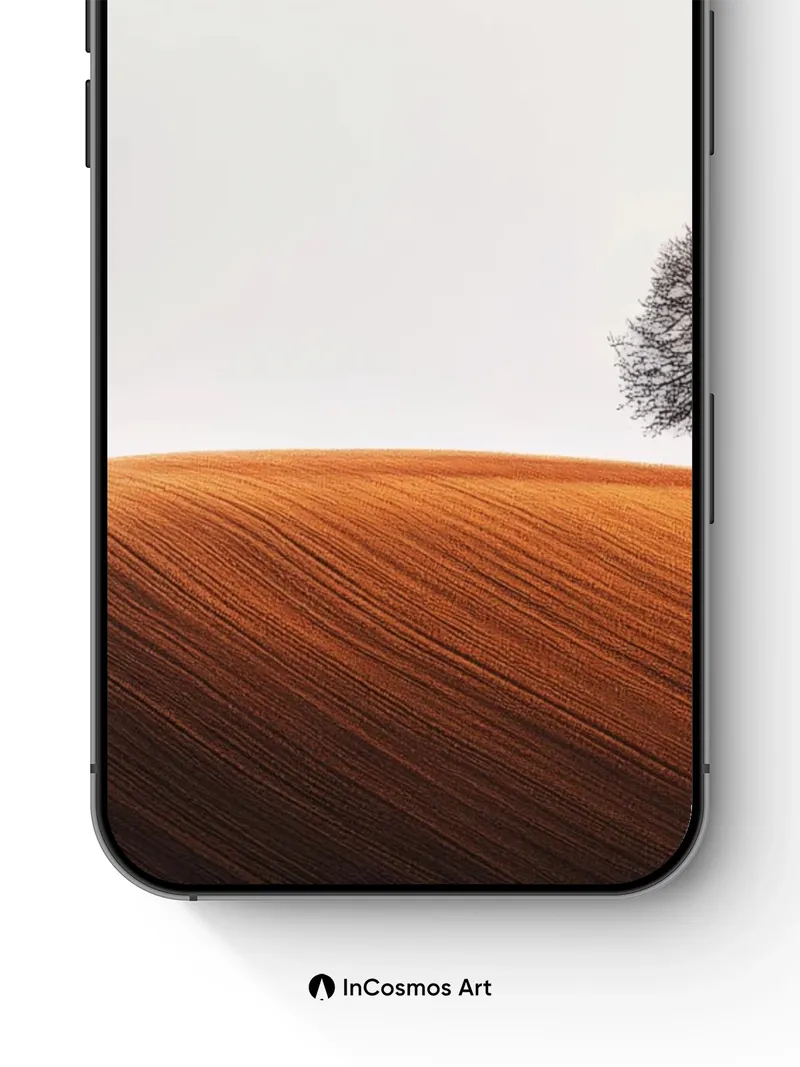 Did you know the color of plowed earth contains traces of ancient iron oxides that shimmer under soft light? A lone tree stands at the crest of a golden-brown hill, its bare branches etched against a hushed sky, as if holding breath between seasons. The land undulates like a sleeping beast, textured with furrows that trace time’s slow passage—each ridge a whisper of memory.