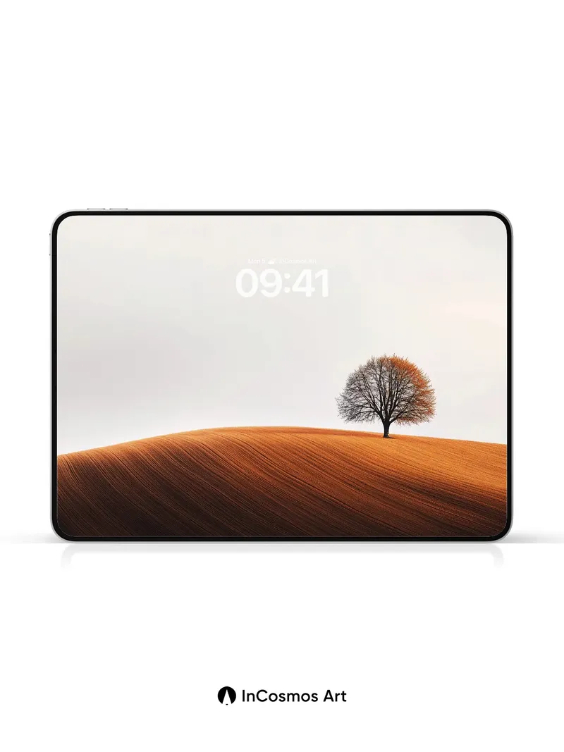 Debug page_description: Did you know the color of plowed earth contains traces of ancient iron oxides that shimmer under soft light? A lone tree stands at the crest of a golden-brown hill, its bare branches etched against a hushed sky, as if holding breath between seasons. The land undulates like a sleeping beast, textured with furrows that trace time’s slow passage—each ridge a whisper of memory. Share this with your best friend. Send this to your love and swap a matching set. What would you say to the silence if it could answer?