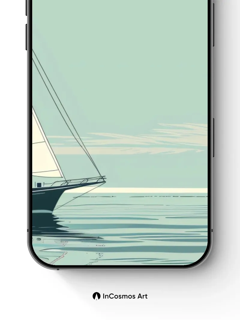 Did you know the sails of ancient vessels were once made from woven hemp soaked in fish oil to withstand saltwater? Here, they float like ghostly parchment over a sea that breathes in soft tides, each ripple catching the light as if it were whispering secrets. The sky above is a hush of celadon, where clouds drift without purpose, and the boat—small, precise—becomes a vessel not just for water, but for quiet contemplation.