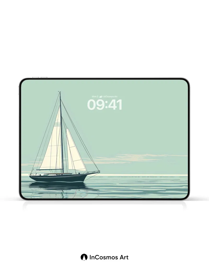 Debug page_description: Did you know the sails of ancient vessels were once made from woven hemp soaked in fish oil to withstand saltwater? Here, they float like ghostly parchment over a sea that breathes in soft tides, each ripple catching the light as if it were whispering secrets. The sky above is a hush of celadon, where clouds drift without purpose, and the boat—small, precise—becomes a vessel not just for water, but for quiet contemplation. Share this with your best friend. Send this to your love and swap a matching set. What if silence had a color?