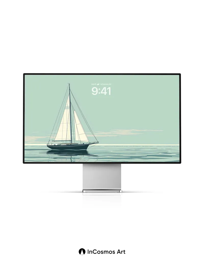 Debug product.metafields.custom.desc: Did you know the sails of ancient vessels were once made from woven hemp soaked in fish oil to withstand saltwater? Here, they float like ghostly parchment over a sea that breathes in soft tides, each ripple catching the light as if it were whispering secrets. The sky above is a hush of celadon, where clouds drift without purpose, and the boat—small, precise—becomes a vessel not just for water, but for quiet contemplation.