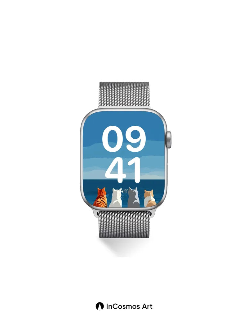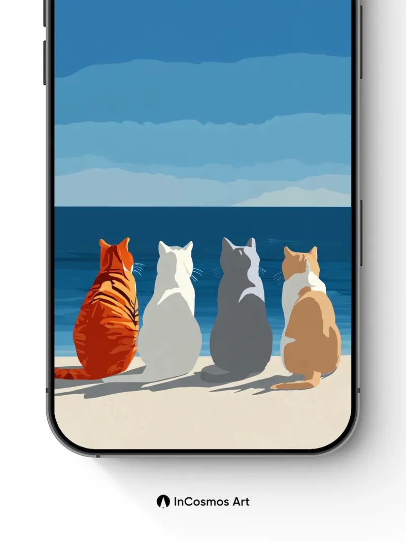 Serenity Seascape Wallpaper with Feline Silhouettes