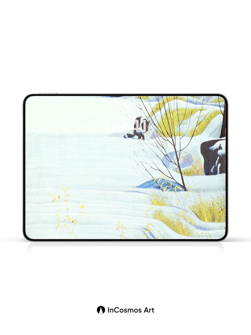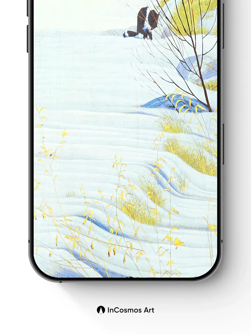 Serenity Snowdrift Wallpaper with Golden Grass Whispers