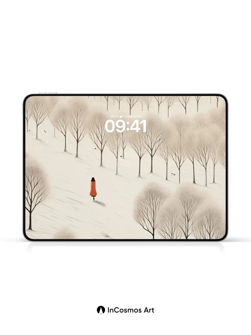 Serenity Snowdrift Wallpaper with Solitary Figure