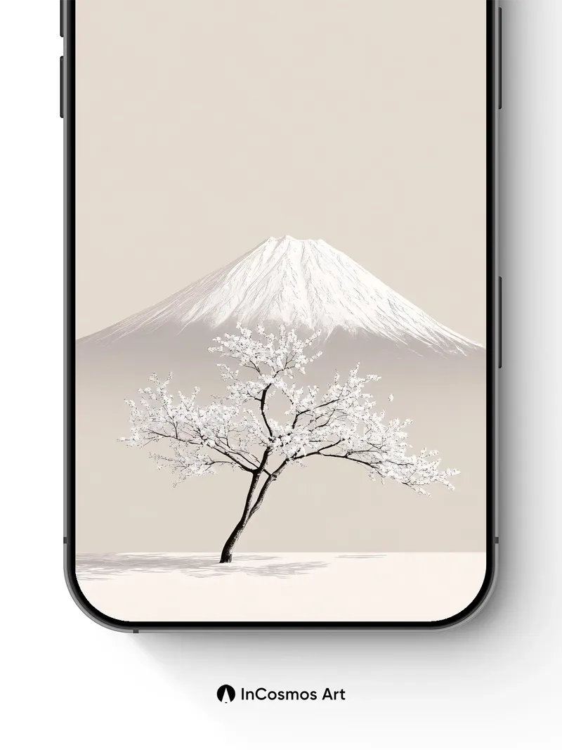 Debug product.metafields.custom.desc: Did you know cherry blossoms in Japan are often seen as fleeting symbols of life’s impermanence? Here, a single tree stands in stark contrast against Mount Fuji’s snow-capped peak, its branches dusted with frost like whispers of winter. The pale sky breathes softly over the still landscape, where silence is not empty but full—of memory, of quiet reverence, of nature holding its breath.