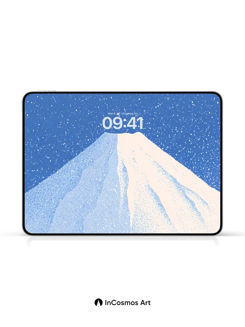 Debug page_description: Did you know that snowflakes form unique crystal patterns in temperatures just below freezing, each one a fleeting geometry of ice? Beneath a sky stitched with falling stars, the mountain breathes slowly, its white skin glowing under a cold, quiet light. Tiny figures wander like specks of color across the endless slope, their warmth a whisper against the vast stillness. Share this with your best friend. Send this to your love and swap a matching set. What if silence had a shape?