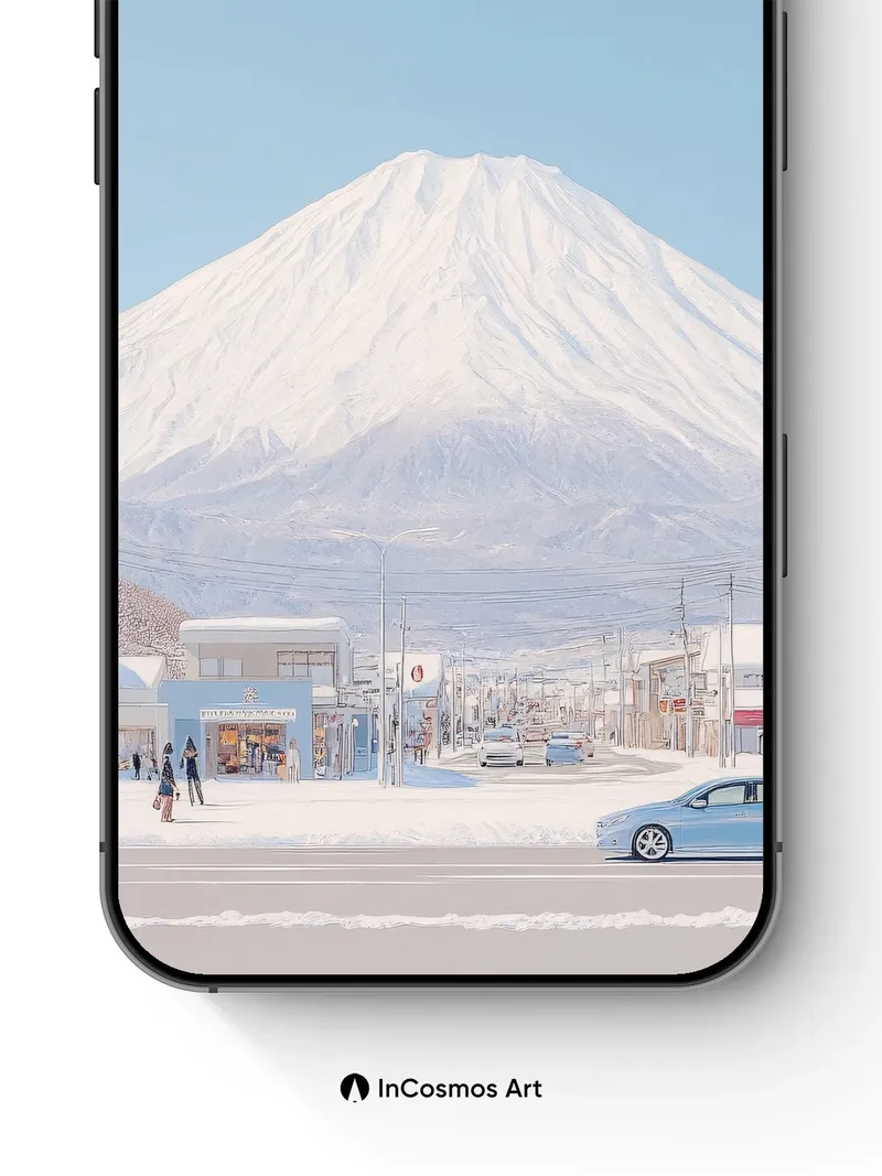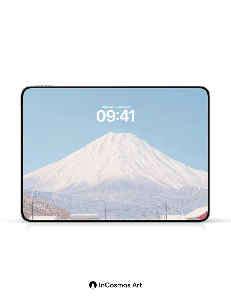 Serenity Snowscape Wallpaper with Mount Fuji Horizon