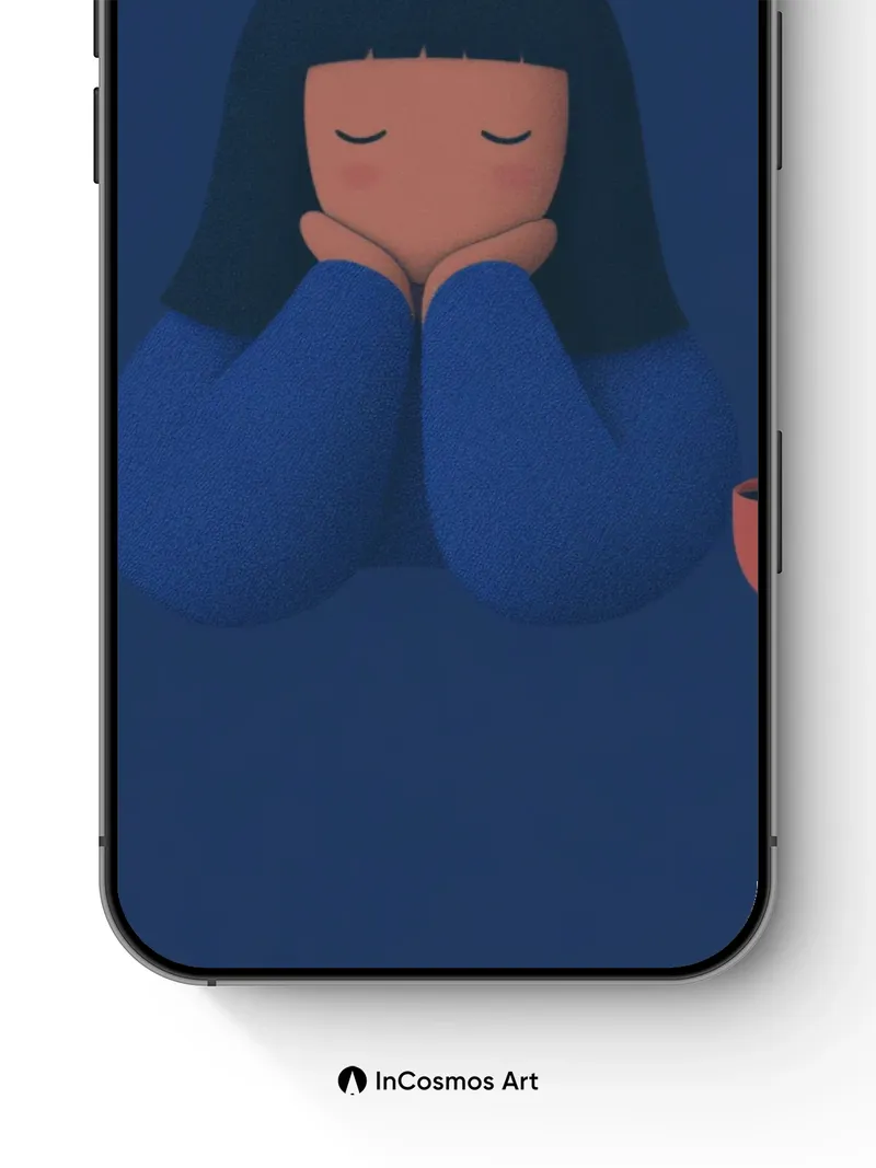 Did you know the color of deep twilight blue can slow heart rate by up to 10%? This quiet scene wraps you in a hush where soft shadows breathe across smooth, matte surfaces and a single terracotta cup glows like a heartbeat. The figure rests in stillness, arms cradling her chin, eyes closed—her silhouette softened by the dim light that lingers just beyond perception.