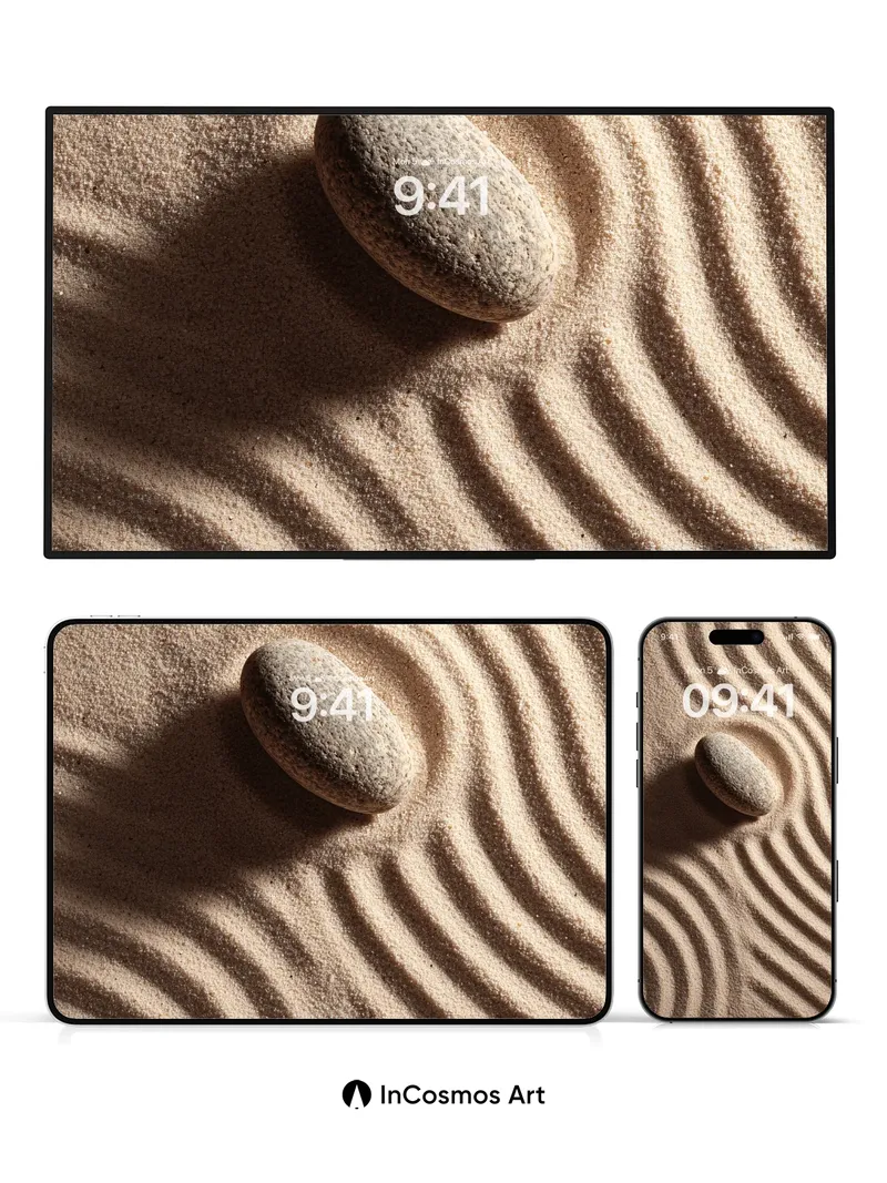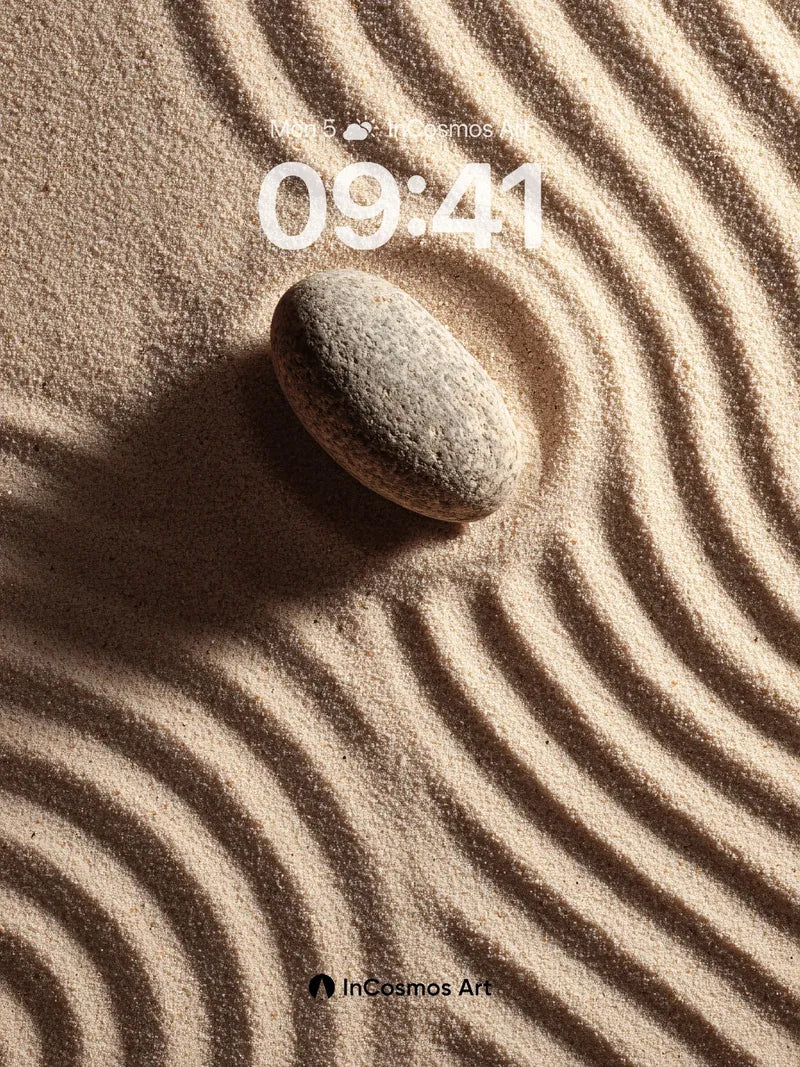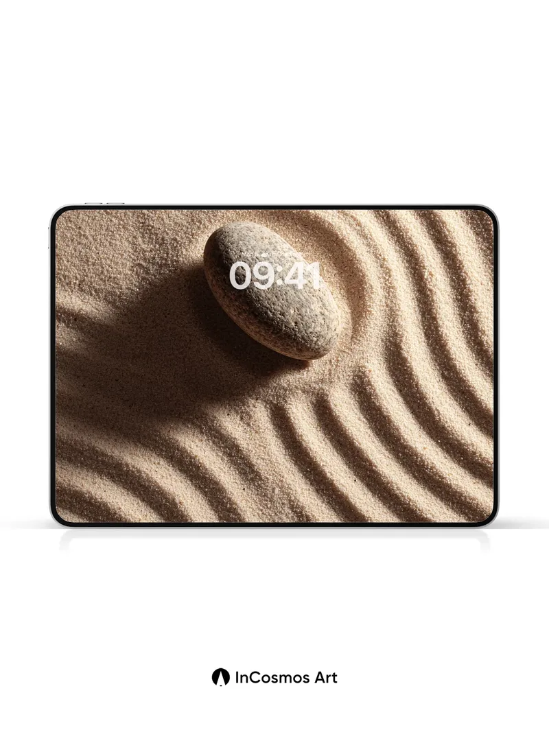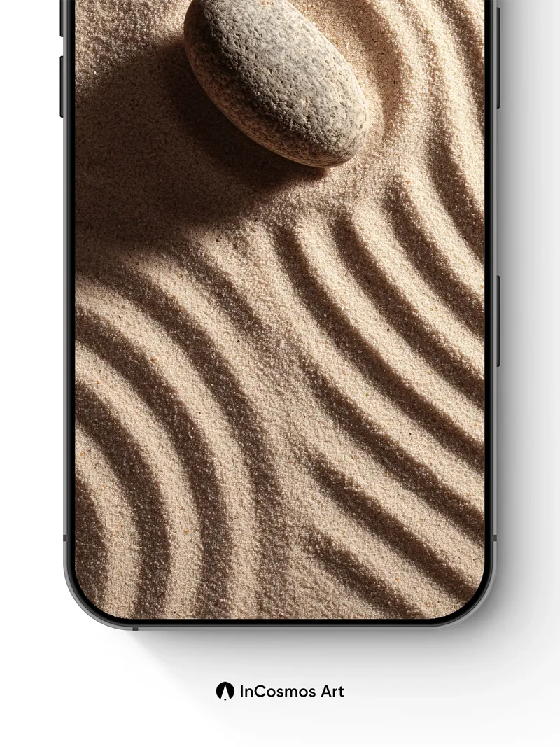 Debug page_description: Did you know Japanese Zen gardens use raked sand to represent water, creating a meditative rhythm that calms the mind? This smooth stone rests like a breath held in time, its shadow stretching across waves of fine beige sand, each groove carved by patient hands and sunlit air. The texture hums with quiet intention, as if the earth itself is breathing beneath your gaze. Share this with your best friend. Send this to your love and swap a matching set. What if stillness could speak?