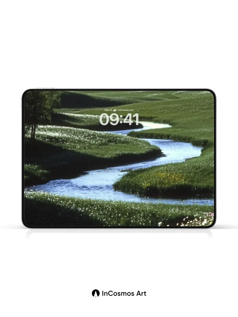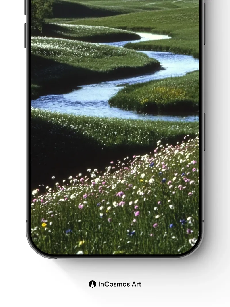 Serenity Stream Wallpaper with Wildflower Whispers