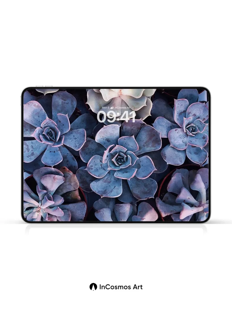 Serenity Succulent Wallpaper with Dew-Kissed Petals