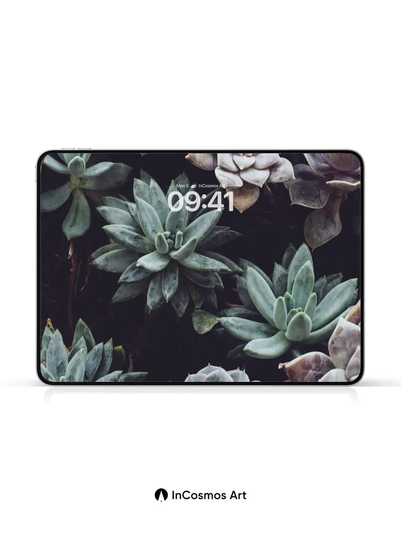 Serenity Succulent Wallpaper with Frost-Like Hues