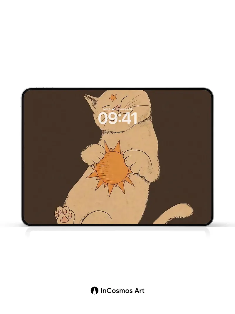 Serenity Sunbeam Wallpaper with Star-Eyed Cat