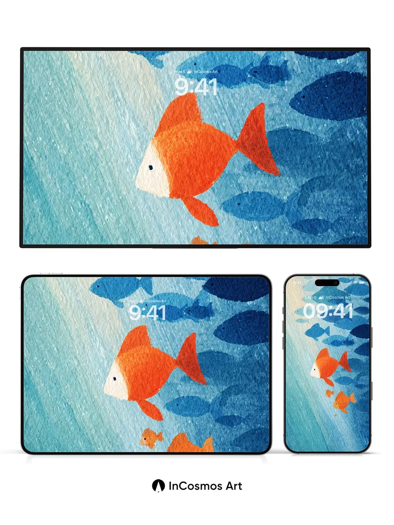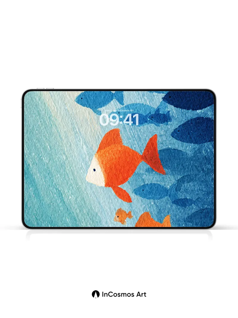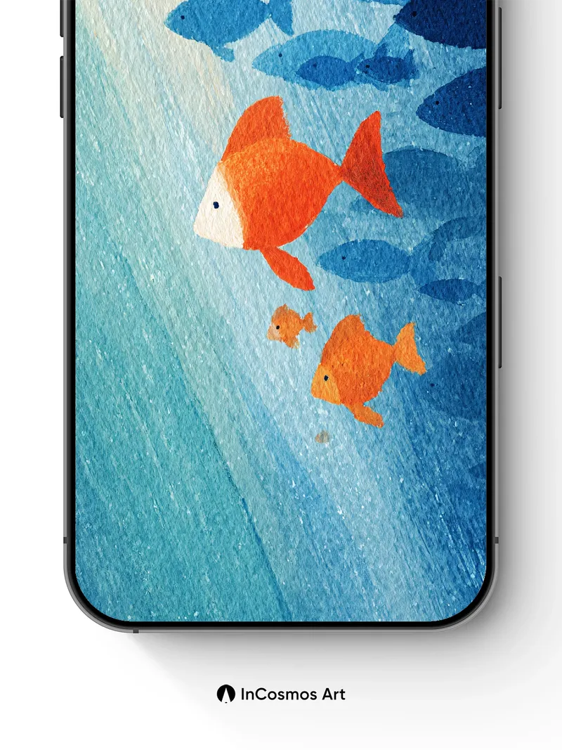 Serenity Swirl Wallpaper with Orange Fish Escape