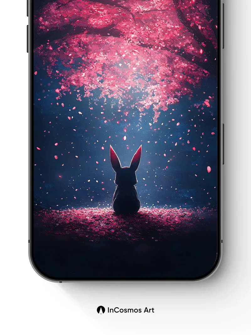 Serenity Under Cherry Canopy Wallpaper with Bunny Silhouette
