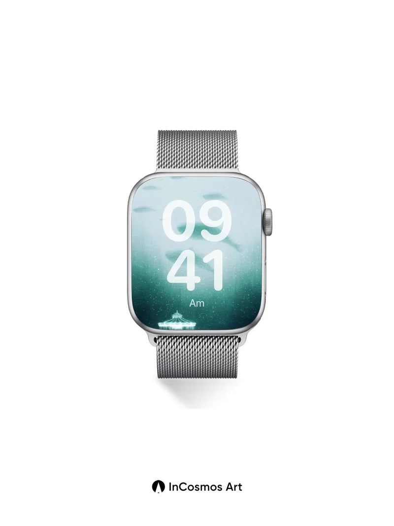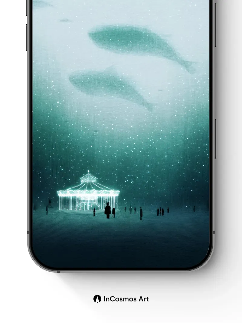Serenity Underwater Gazebo Wallpaper with Floating Whales