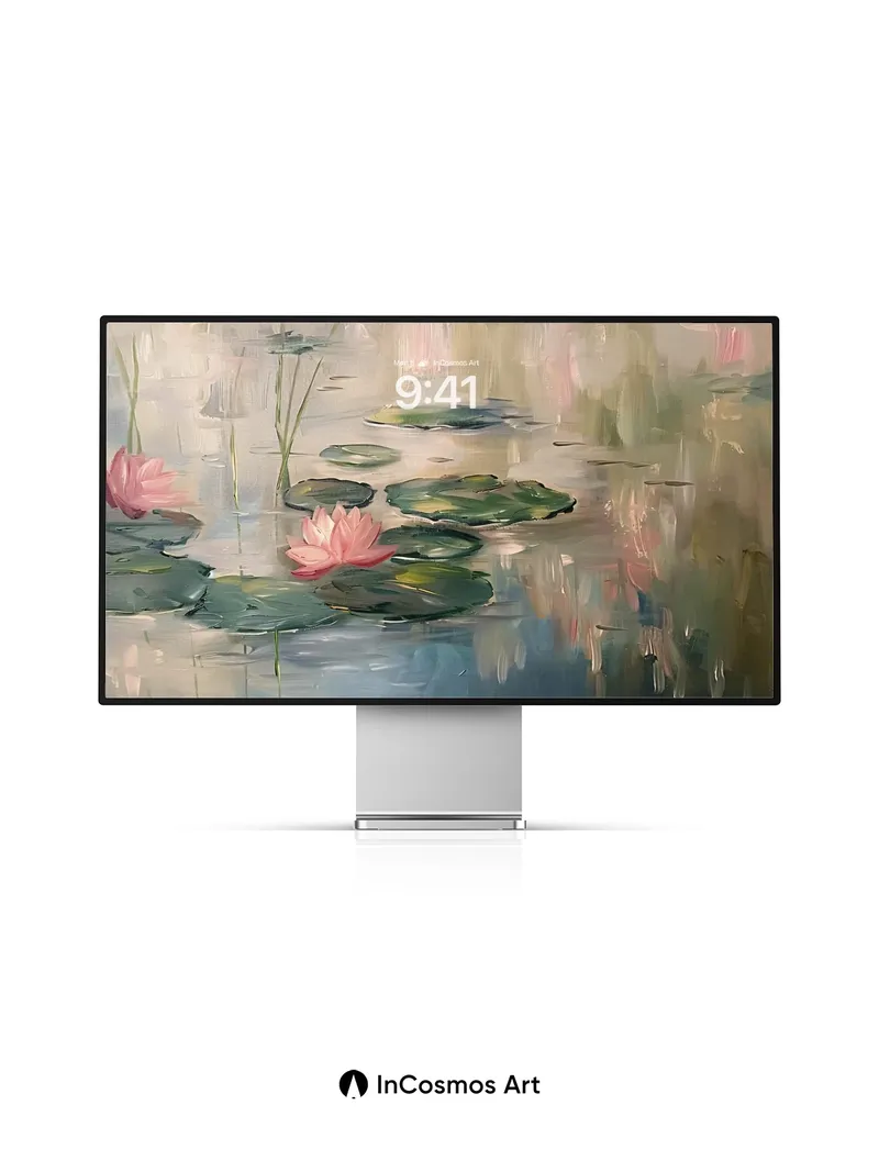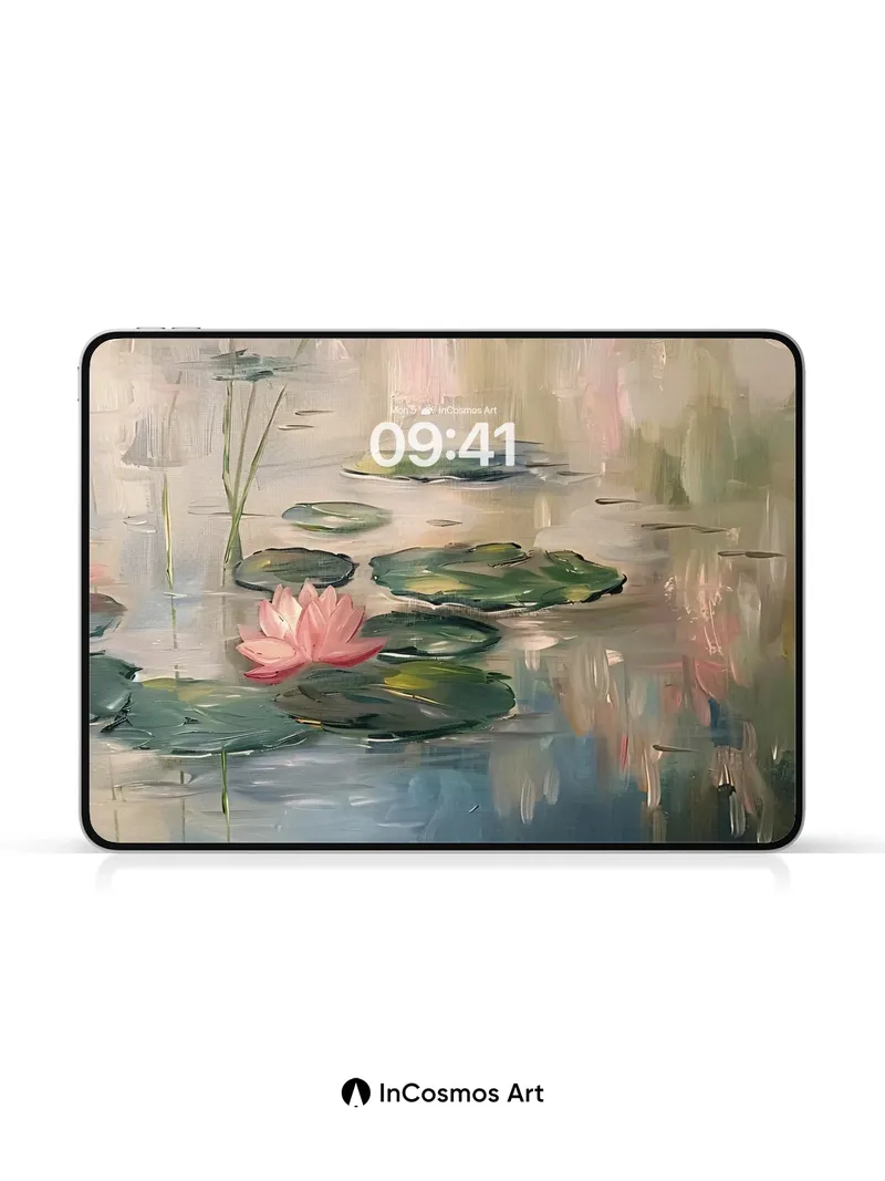 Serenity Waterlily Wallpaper with Monet's Brushstrokes