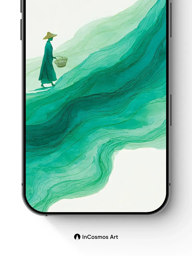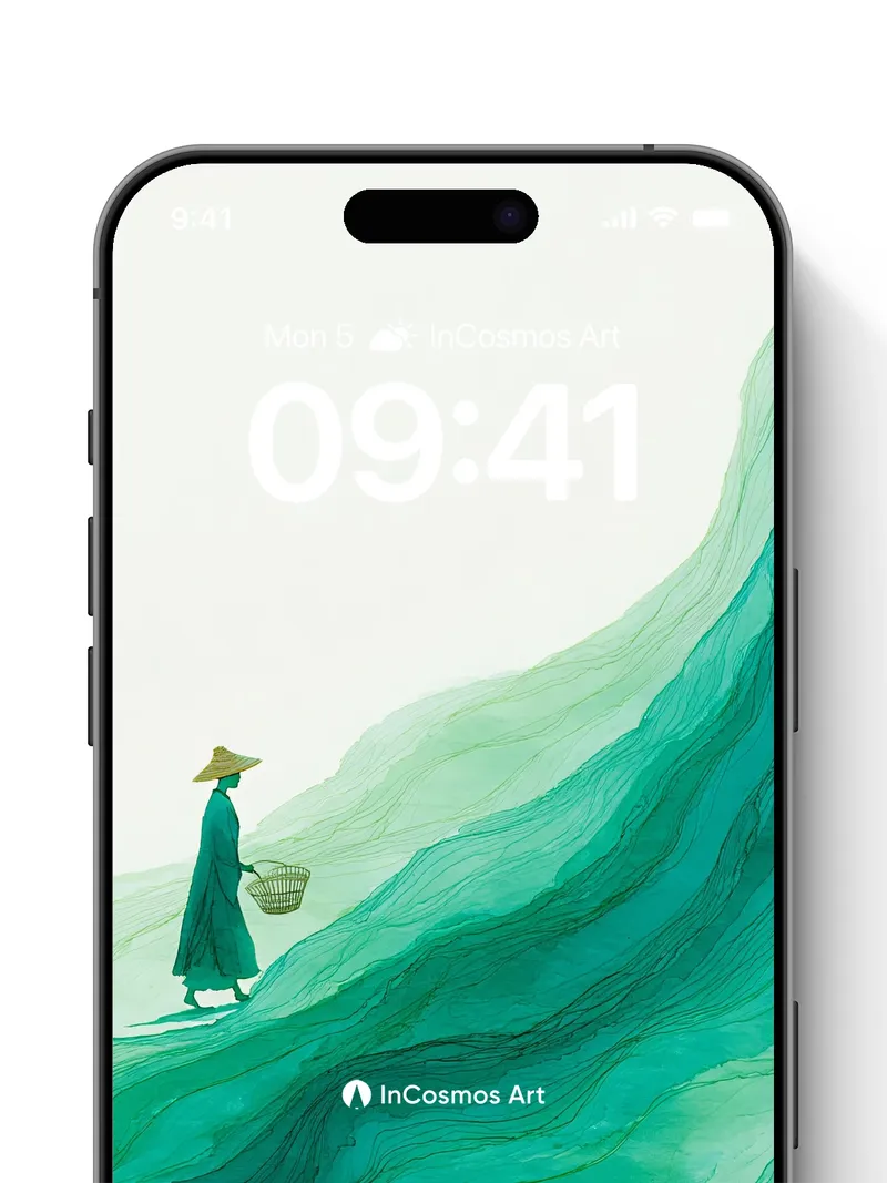 Serenity Wave Wallpaper with Floating Farmer