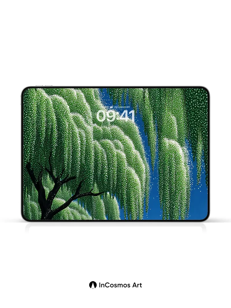 Debug product.metafields.custom.desc: Did you know the weeping willow’s drooping branches once symbolized sorrow in ancient Chinese poetry? Here, they cascade like emerald curtains stitched from light, each leaf a tiny dot of life against a sky so deep it feels like breath. The snow beneath holds their shadow like a secret, and the sea beyond hums in silence—this is not just a scene, but a moment suspended between seasons.