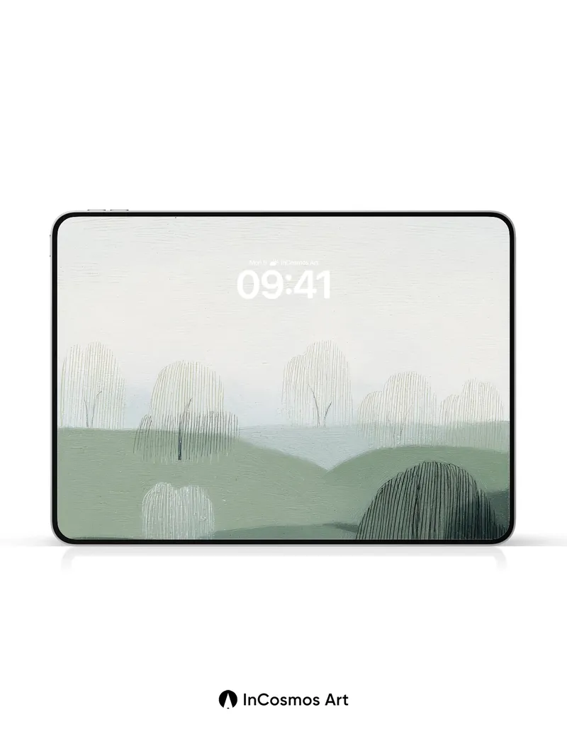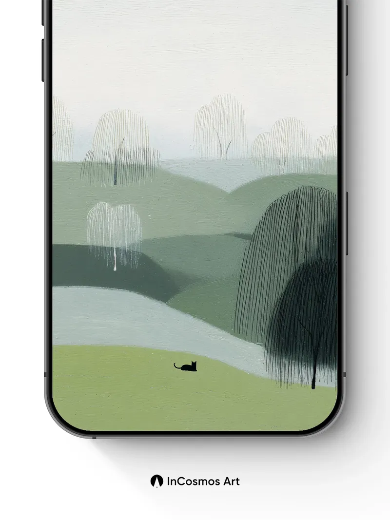 Serenity Weeping Willow Wallpaper with Silent Cat