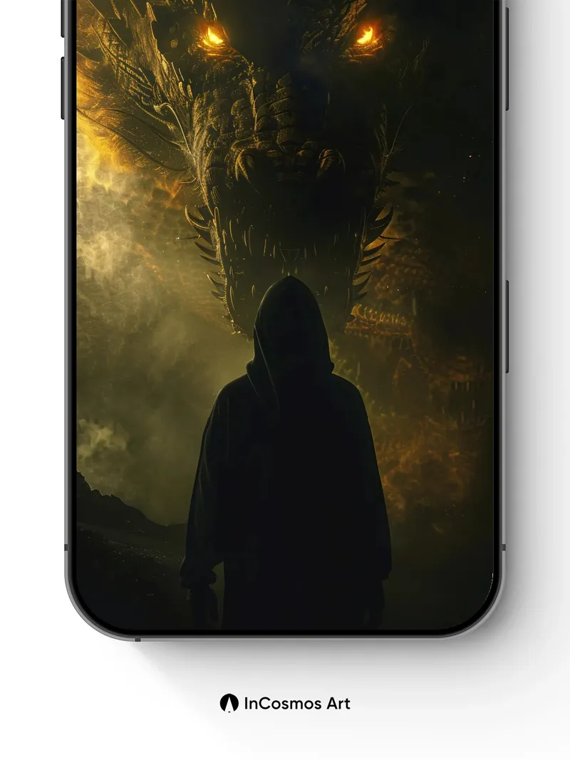 Shadowed Encounter Wallpaper with Fiery Dragon Eyes