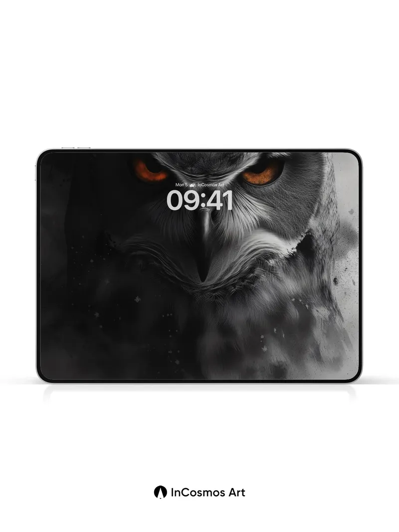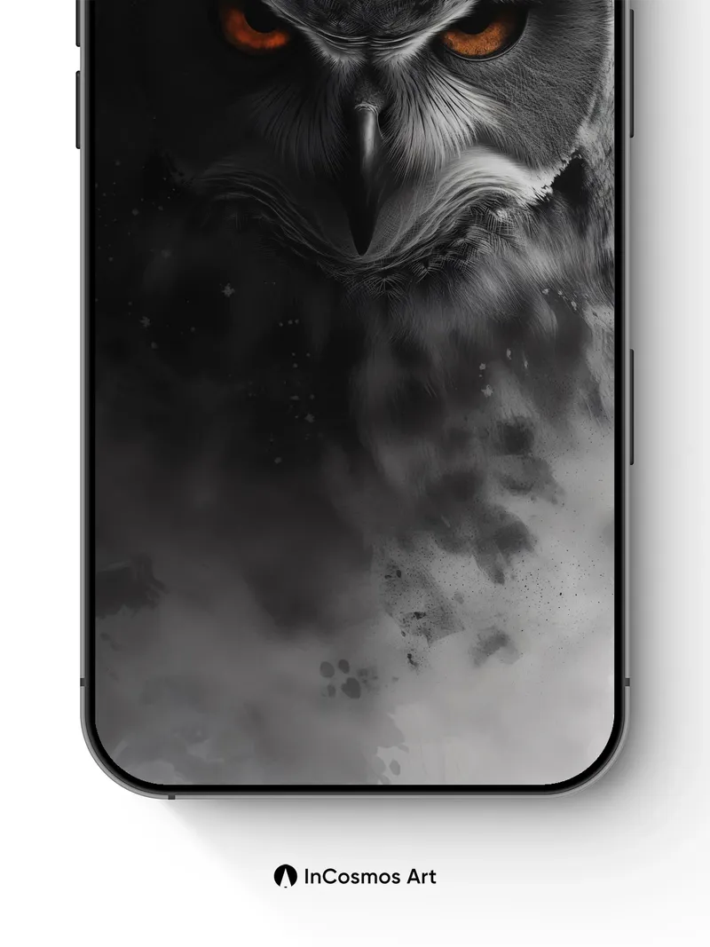 Shadowed Gaze Owl Wallpaper with Fiery Eyes