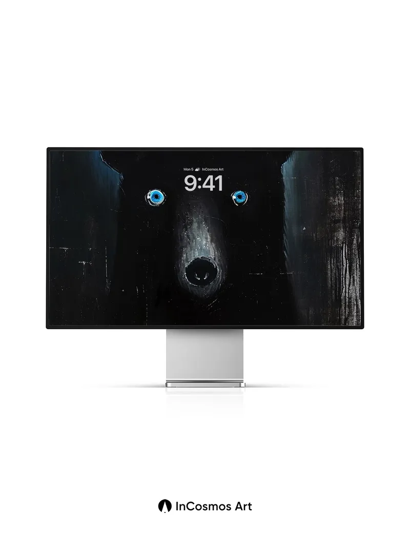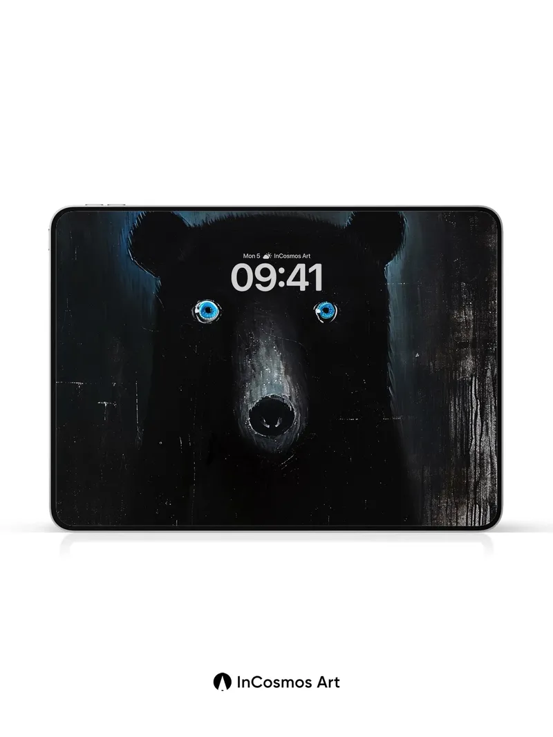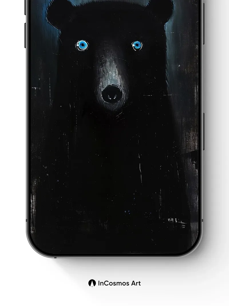 Debug page_description: Did you know that black bears can see in near-complete darkness, their pupils dilating to absorb every sliver of light? This image captures that quiet intensity—eyes like twin moons glowing in a void, where texture bleeds into shadow and the bear’s silhouette breathes through the canvas. You feel the weight of stillness, yet something ancient stirs beneath the surface. Share this with your best friend. Send this to your love and swap a matching set. What if the dark was never empty, but full of watching things?