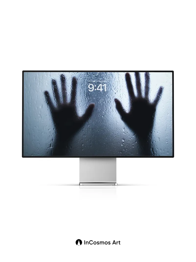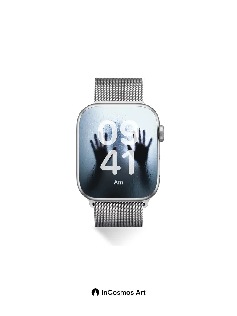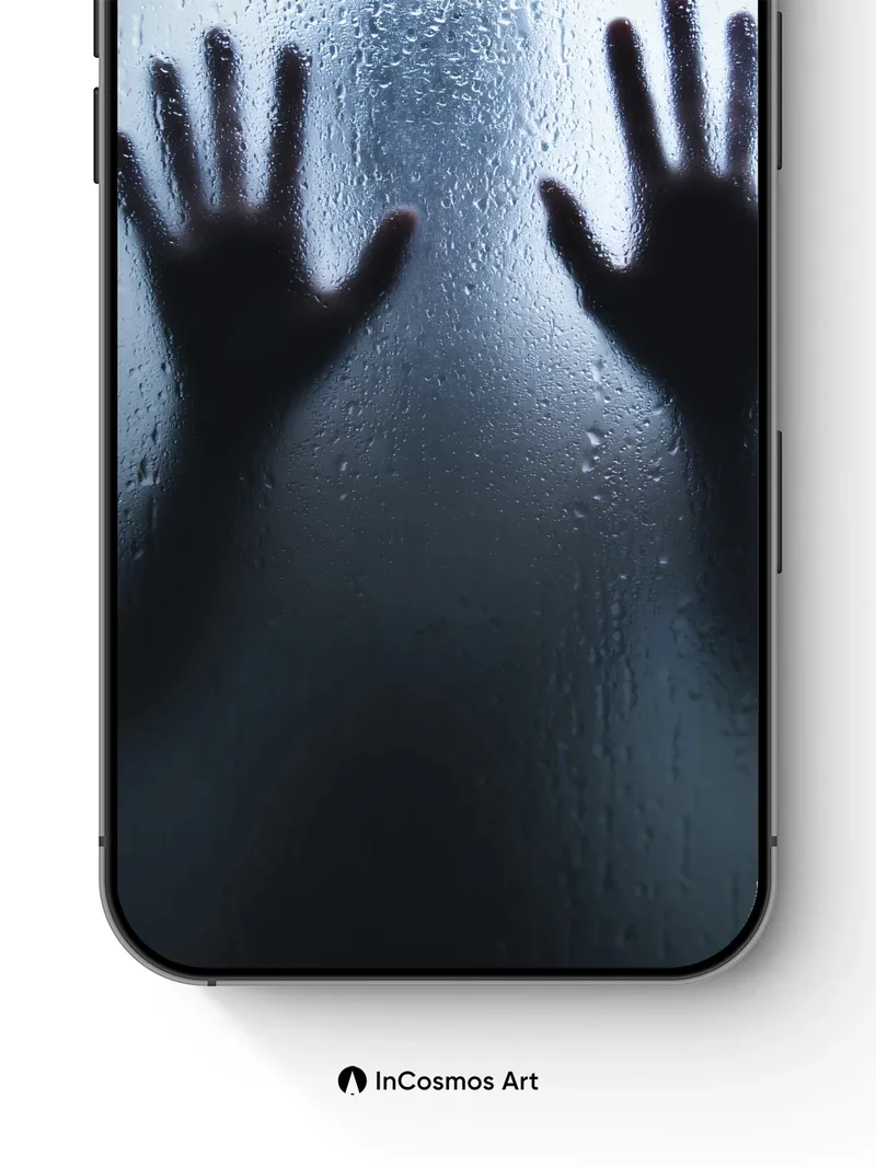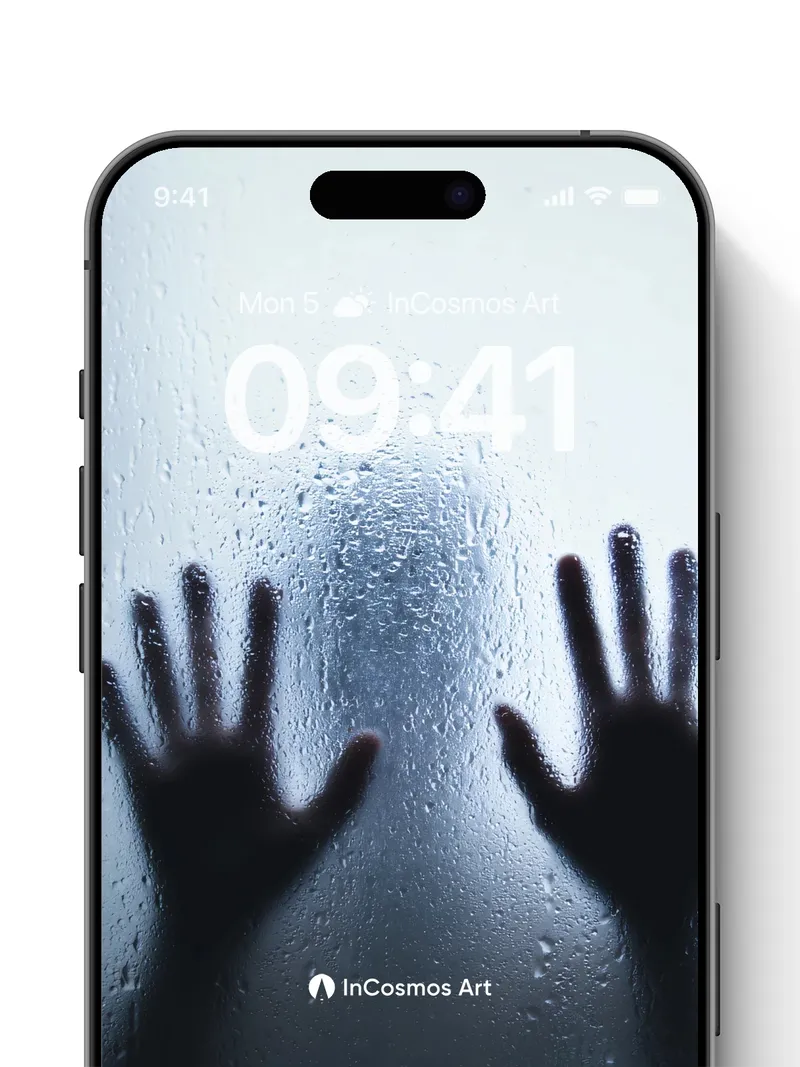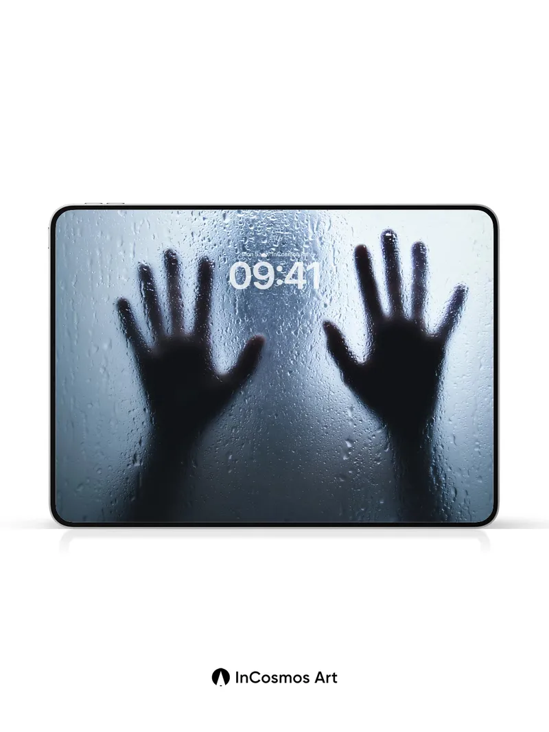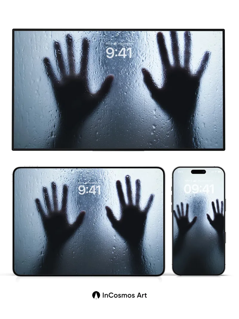 Shadowed Hands Wallpaper with Fogged Glass