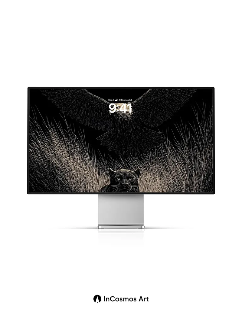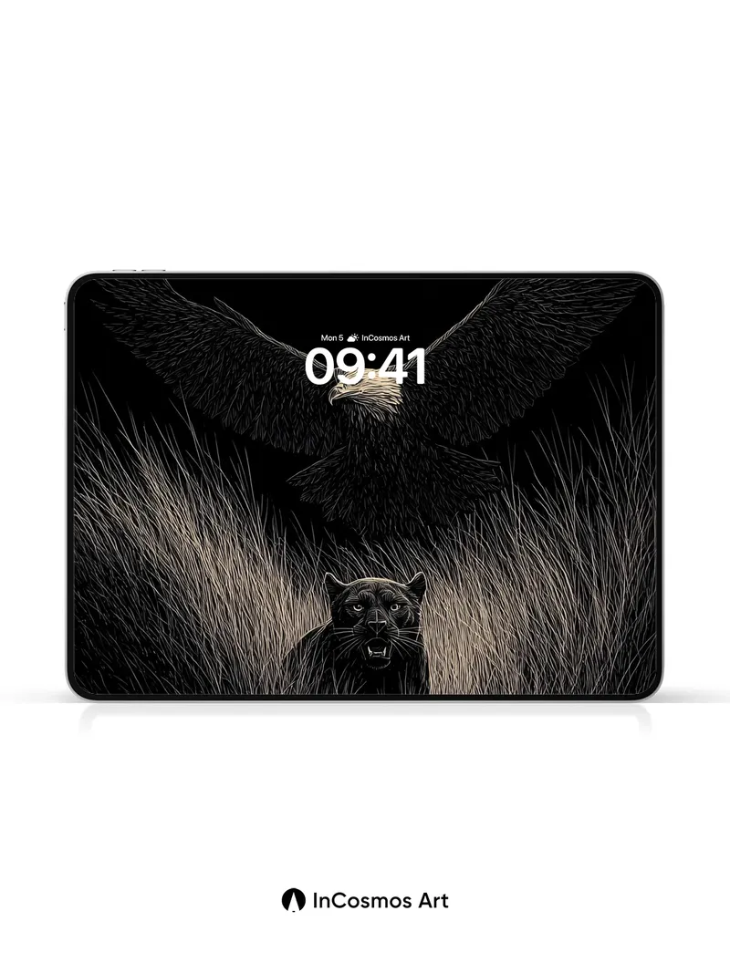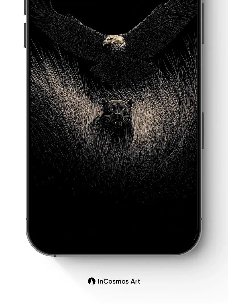 Debug product.metafields.custom.desc: Did you know that black panthers can see up to six times better than humans in low light? In this scene, the eagle’s wings slice through the dark like a blade of moonlight, while the panther’s eyes glow with ancient hunger beneath the whispering grass. You feel the weight of silence—each feather and fur strand alive with tension, as if the world holds its breath between predator and prey.