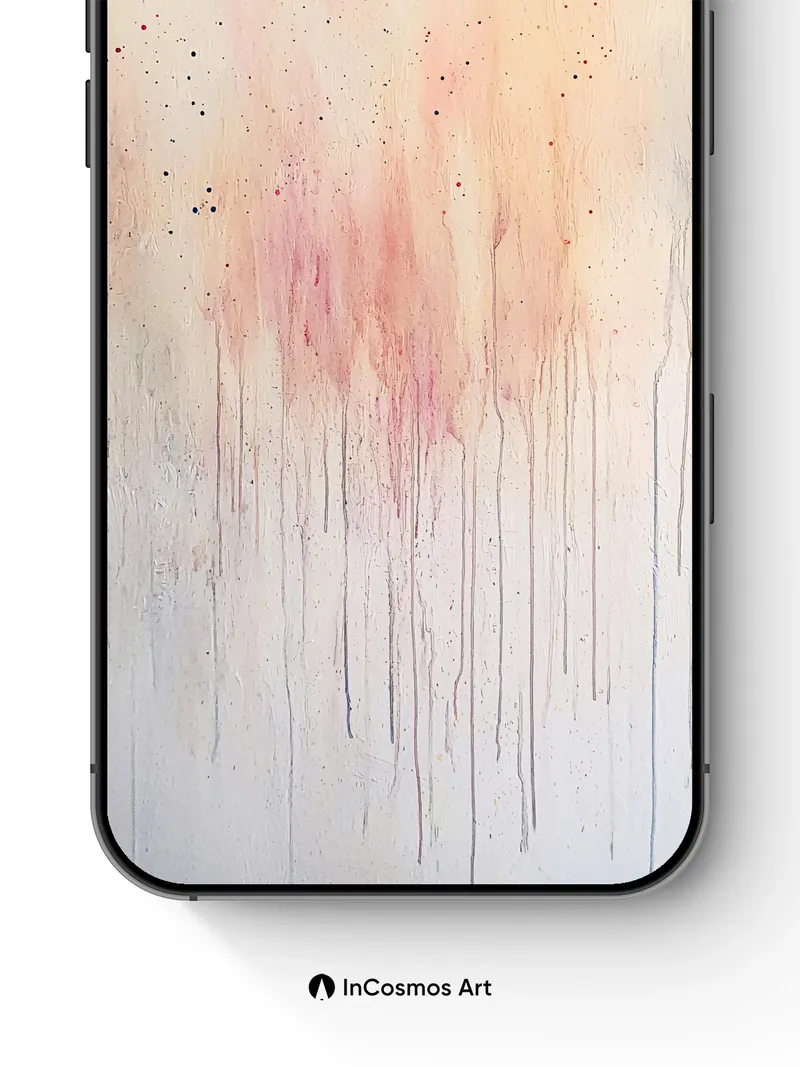 Did you know that pigment drips on canvas can mimic the slow fall of ash from a dying fire? Here, faint crimson trails bleed downward like silent tears across a breathless off-white expanse, each droplet a memory suspended in time. The surface feels almost alive—soft as aged parchment, yet trembling with unseen energy, where scattered specks of color act like distant stars falling into an endless void.