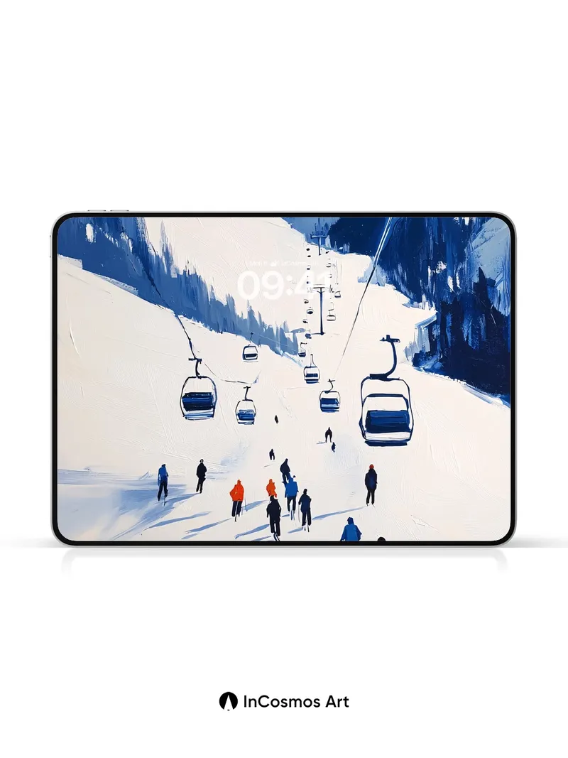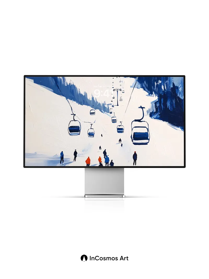 Silent Ascent Wallpaper with Snow-Carved Lines