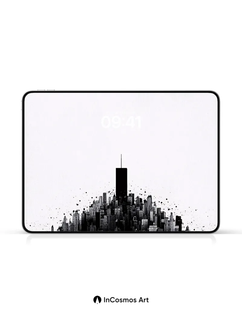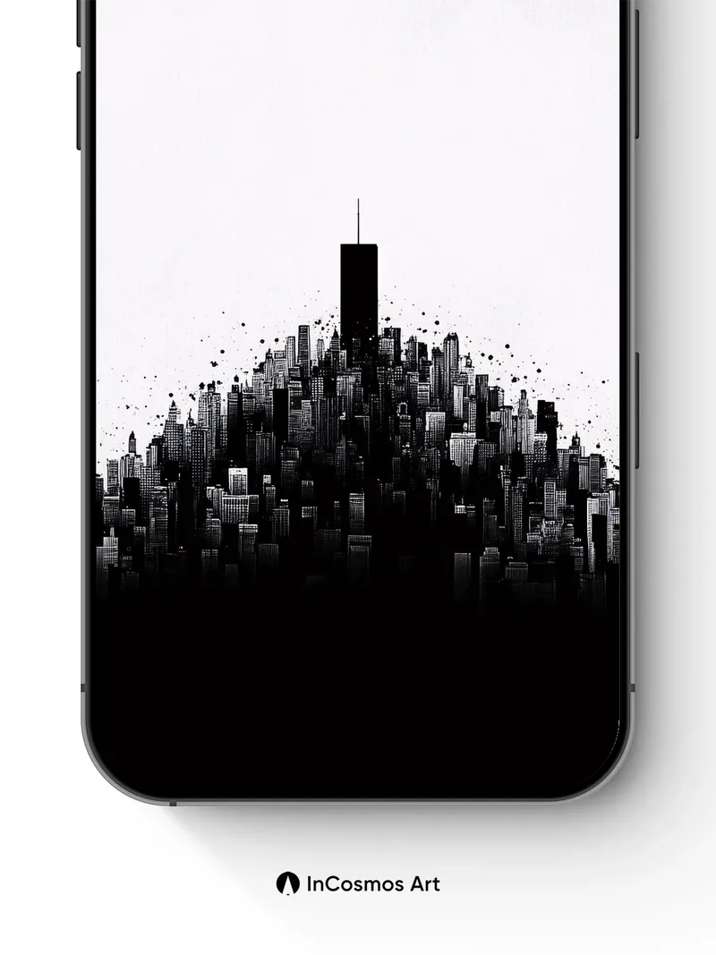 Silent Cityscape Wallpaper with Ink Bloom