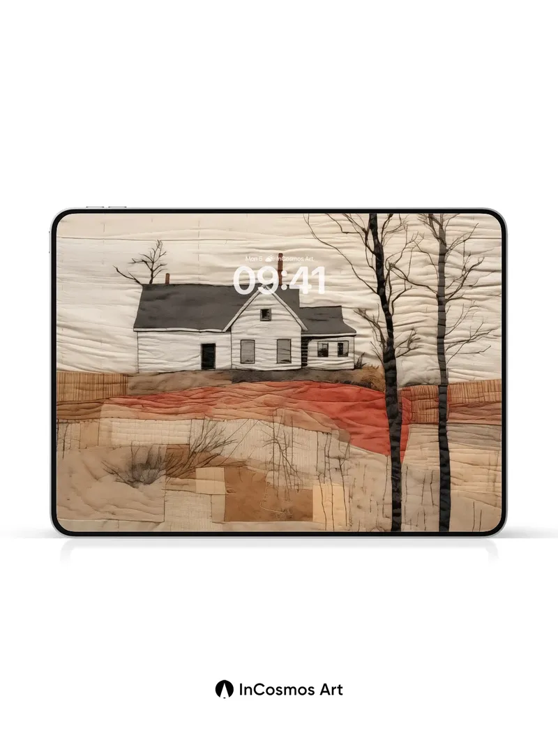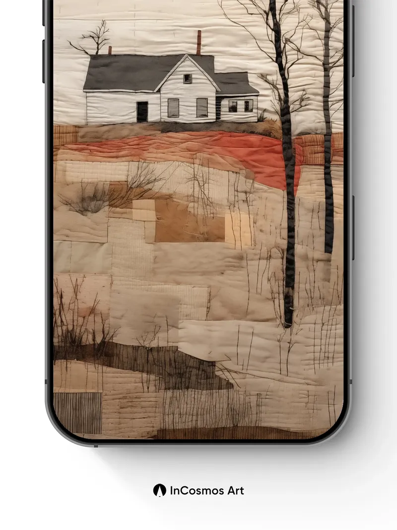 Silent Farmhouse Wallpaper with Embroidered Winter
