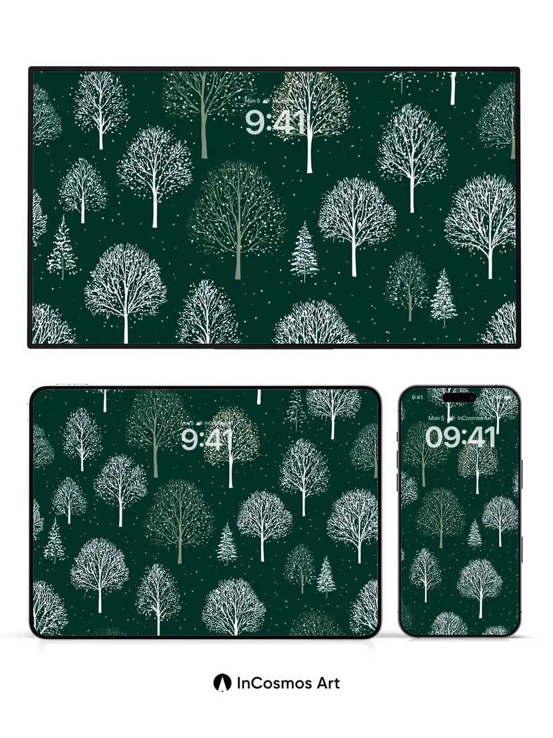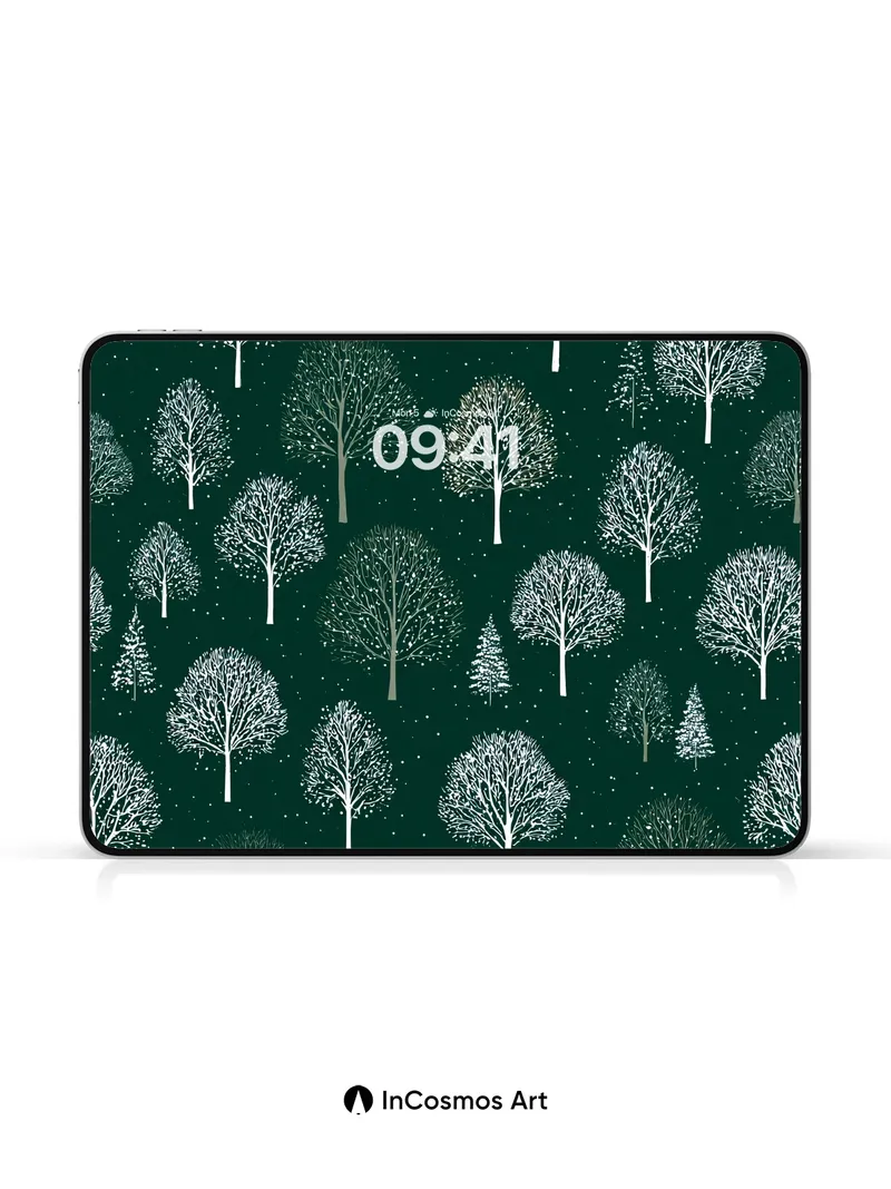 Silent Forest Wallpaper with Snow-Kissed Canopy
