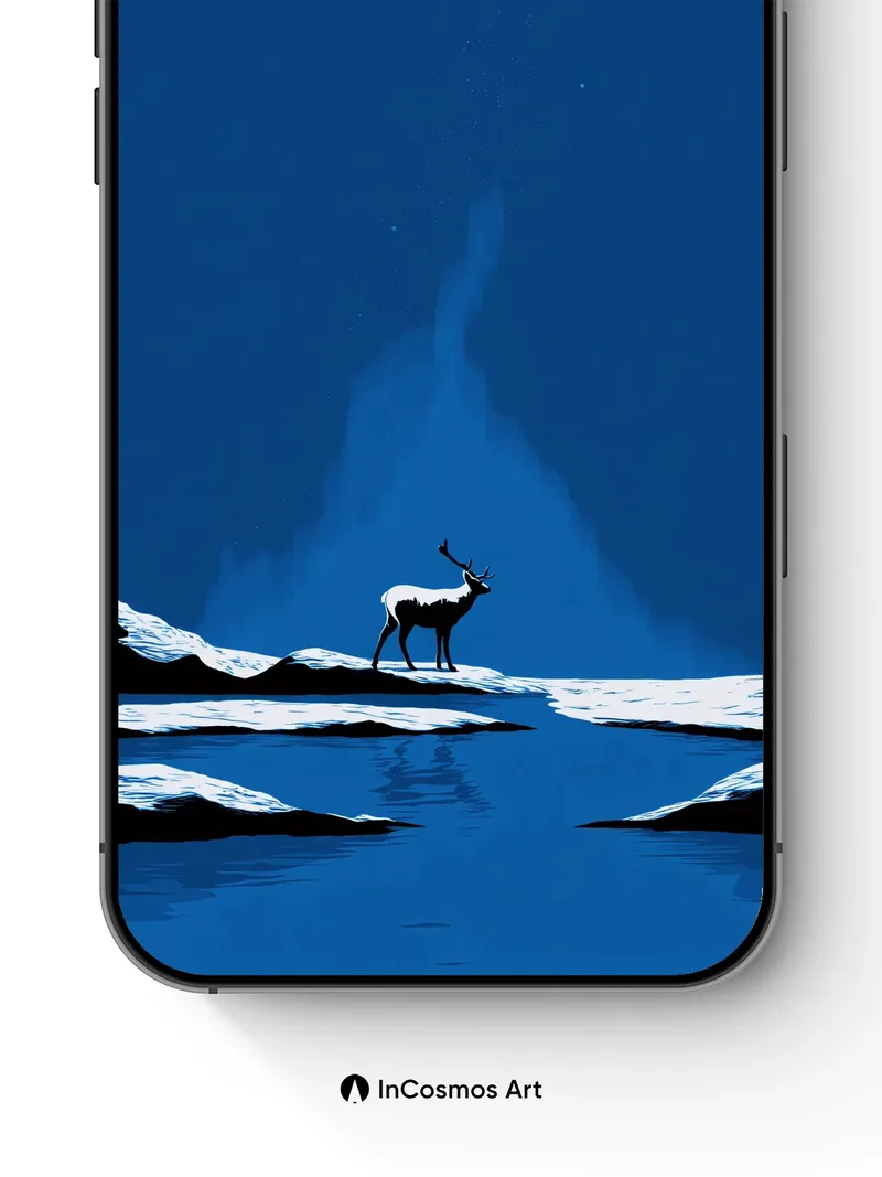 Debug page_description: Did you know reindeer can see ultraviolet light, making snow glow like a hidden map under the Arctic sky? Here, a solitary stag stands at the edge of frozen water, its silhouette etched against a deep blue void where stars trace ancient paths. The ice breathes beneath it, cracked and still, reflecting not the sky but the quiet pulse of something older—something that watches back. Share this with your best friend. Send this to your love and swap a matching set. What if the stag is not alone, but the first witness of a world yet to wake?